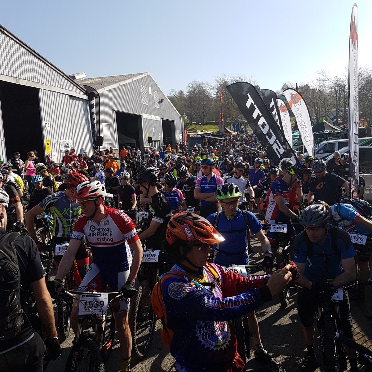 The first Scott mountain bike marathon of 2017 started from the Builth Wells Royal Welsh Showground on the hottest, sunniest day of 2017 so far. 800 riders chattered together in the sun, ready to tackle the mini, half or full marathon courses. Some were looking a bit bleary eyed, having doubled up and ridden the Exposure Lights Big Night Out shorter course the previous night. This year, although bike banter bounced off the showground buildings, the mood was tangibly dampened and rightfully somber. Before the off, riders clapped loud and long to salute the life, lost far too early, of Charlie van der Craig. This is the second weekend running where I’ve raised my water bottle on the start line in memory of a lost cyclist (#bemoremike) and despite the sunshine and smiles it was a heavy-hearted ride.