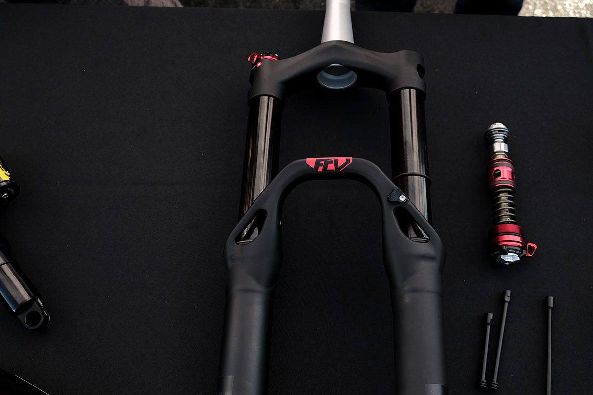 The fork itself is a hard hitting trail and enduro fork and (currently) will come in 27.5in with travel in the 150-170mm range. The new chassis has been updated with Boost 110mm spacing and a whole new bulged fork lower assembly. There’s a completely new air spring on one side and hydraulic cartridge on the other.