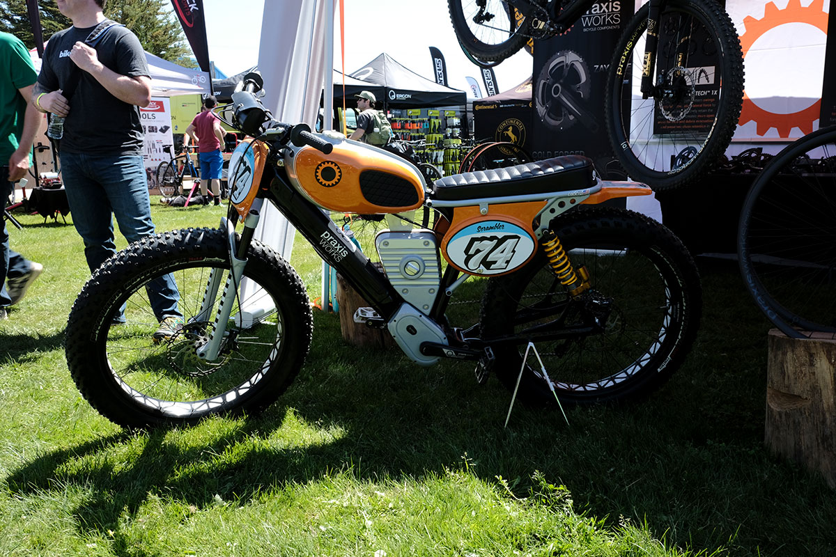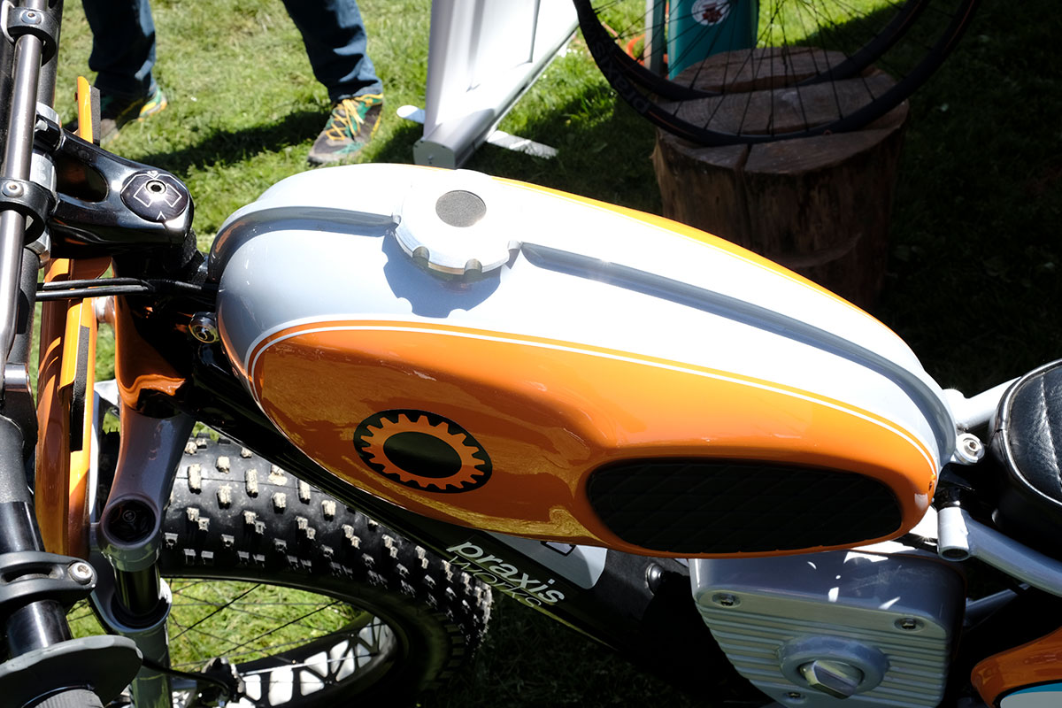 And on the Praxis stand there appeared to be a 1970s scrambler motorbike but it turned out to be yet another crazy concept machine from Robert Egger – Creative Director of Specialized.