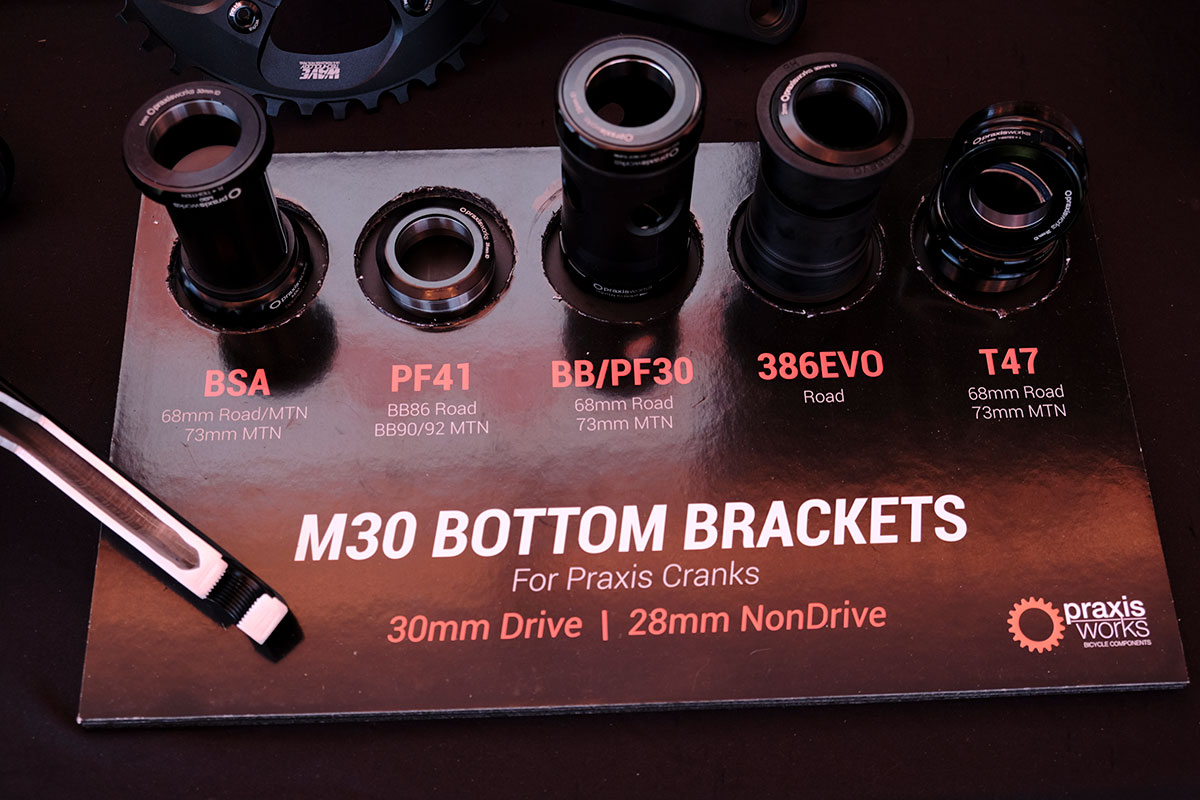 Praxis was one of the first companies to do a screw-together alternative to the press-fit cups that people were finding started creaking really quickly if you didn’t live in California, but it also does a good range of threaded BBs too – including the newish T47 oversize shell. Several of which we saw at this month’s Bespoked Show in Bristol.
