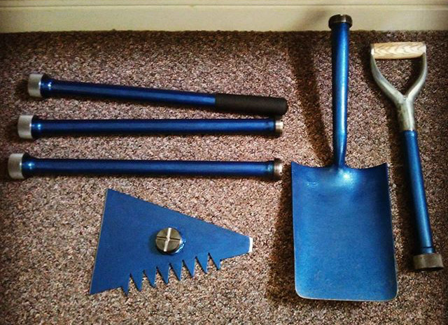 UK made steel trail building tool can turn into a spade, a mcleod, or a very big stick.