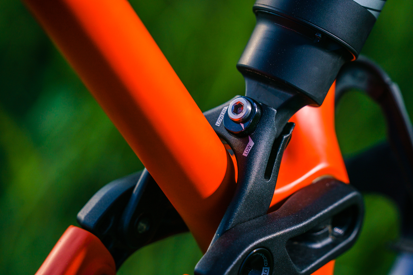 A few key details that I particularly like about this frame is the neat small touches of the well thought out design. Like allowing for the use of a “proper” bottle cage. Orbea have cleverly offset the bottle cage bosses 5mm to the left hand side to ease access. Also the shock is mounted offset, 12mm to the right. This results in the shock is neatly tucked under the top tube away from mud and stones from the wheels. Also positioning it off centre it allows the rider to use the platform lever on the shock for climbing. A quick glance down can also give a visual reassurance to a tired rider that the lever is in the desired position for the upcoming trail features. I found this a great help whilst riding the trails of Benasque blind.