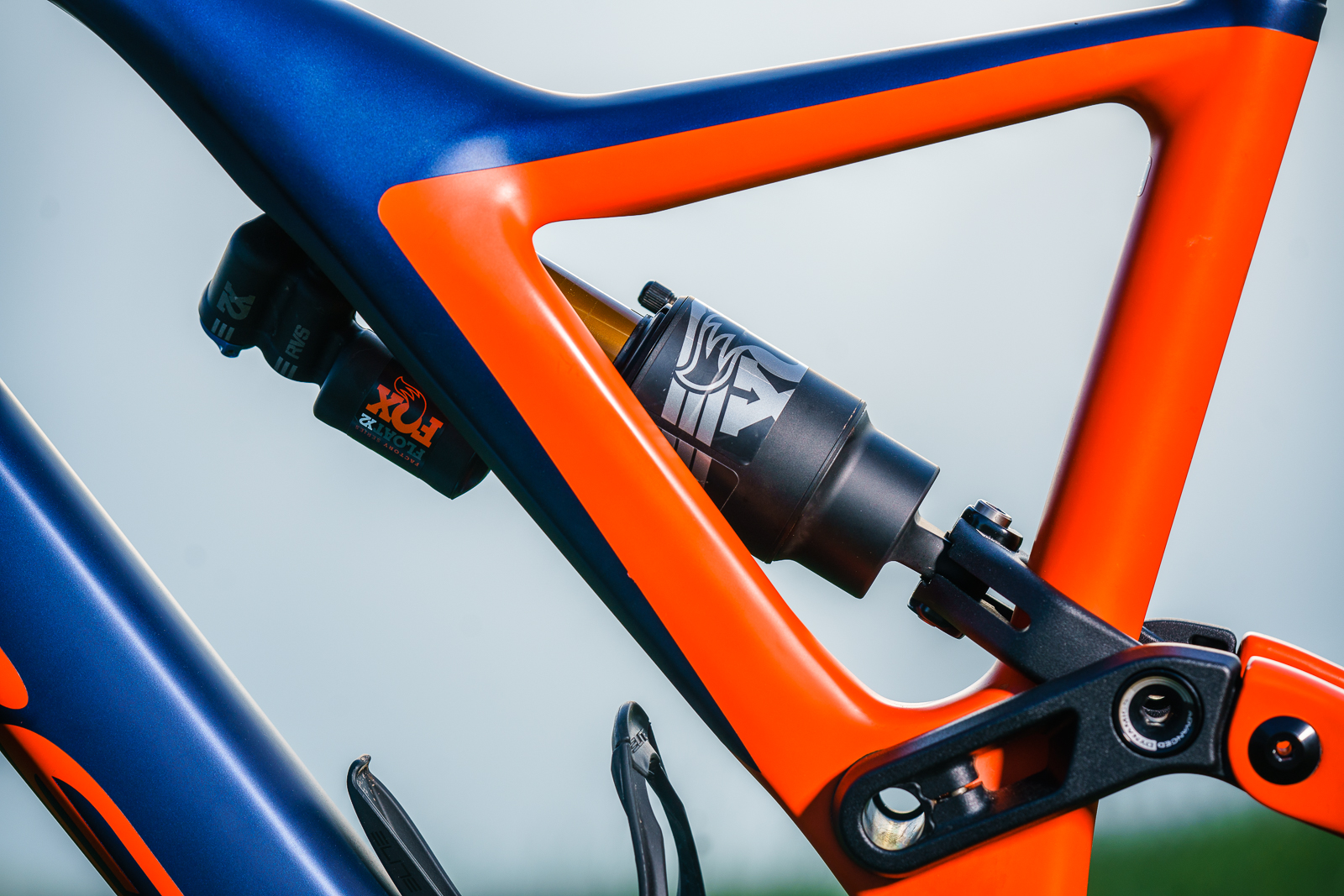 This is the 5th incarnation of the Rallon and in my opinion the most radical in terms of the design of its predecessors with its modern ‘enduro’ geometry. The new Rallon main frame and swingarm is constructed from Orbea Monocoque Race (OMR) carbon fibre and weighs in at 5.7lbs (2.6kg). The wheels’ size has taken a jump up from the previous Rallon of 2014 to 29in. Orbea markets this machine as an out and out Enduro bike with an emphasis on speed. Hence the hike in wheel size. Boasting 150mm of rear travel through Orbea’s own ‘Advance Dynamics’ suspension design (four bar linkage) coupled with a concentric boost (12x 142mm boost) rear end (similar in looks to what Trek use) to help limit the disruption of the shock with braking forces combined with a high pivot point and a claimed improvement in both progressiveness and linear suspension action over the previous Rallon design, achieving this with a collaboration with suspension experts Fox.