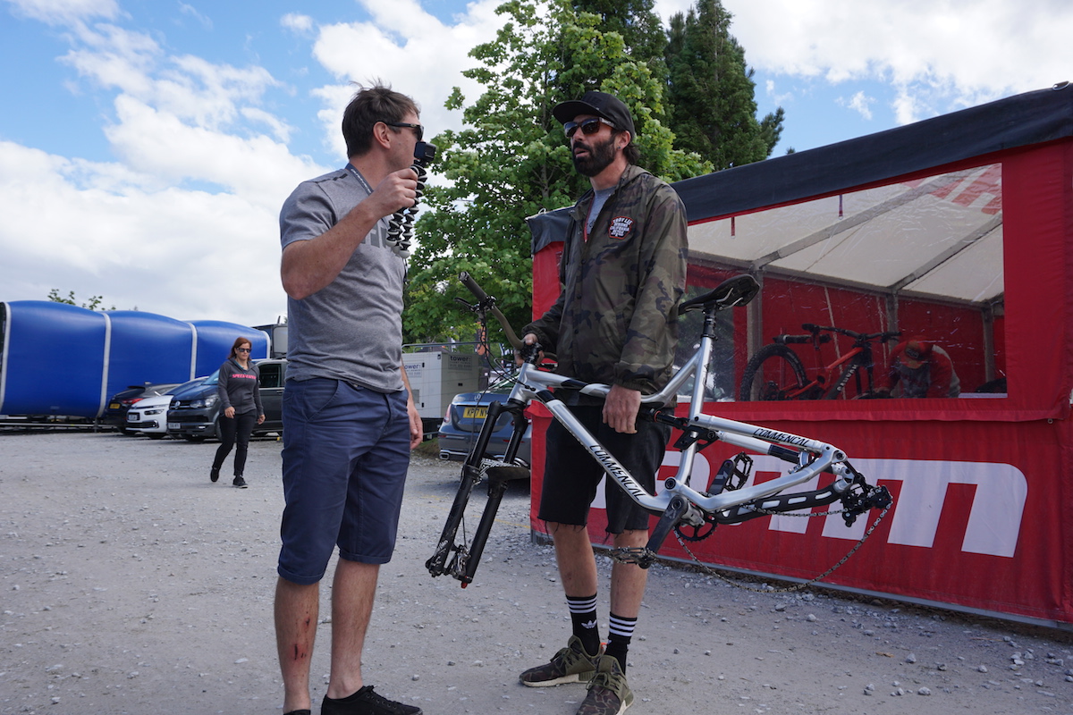 We caught a quick word with Sam and his prototype Norco Factory Racing bike, before he jumped back on the gondala for another run.Mulally hits the bottom of Fort William on his YT Mob Tues.On his lead-equipped Geometron, Jack takes us through some of the features of this new and improved Fort William track.The chilled-as-ever Laurie talks to Ross about the updates to the Fort William World Cup track. It’s all smiles here.It’s not a World Cup at Fort William without a chat with the legendary Rob Warner. On form, as always.Now on the Specialized Gravity Racing team, Miranda chats with Ross about the tricky sections up in the woods.Back on the big downhill bike for Fort William, Sam casts his eyes back to Ireland last weekend, for a chat about Enduro racing.We didn’t manage to catch up with Rachel today, but after timed practice she’s the woman to catch. A true legend of the sport, and one of the greatest mountain bike athletes of all time.Fort William local Joe Barnes is here supporting his pals as a mechanic, now his attention is turned to the EWS.The beast that is Aaron Gwin. Ross catches up with Gwin to discuss bike set-ups for Fort William.Smiling in the pits. Gwin seems super relaxed through practise, with plenty of laps to pack in before race day on Sunday.