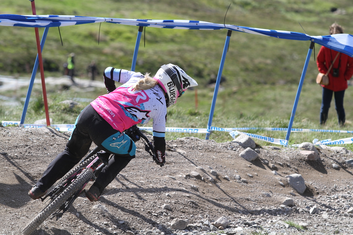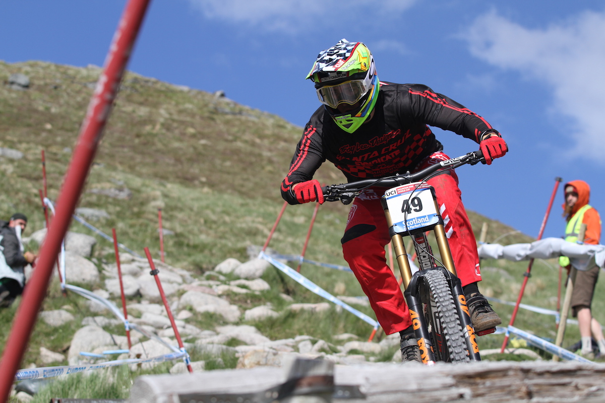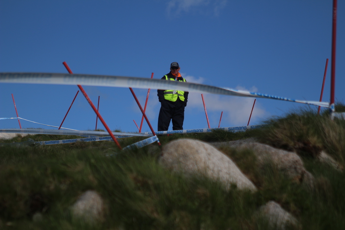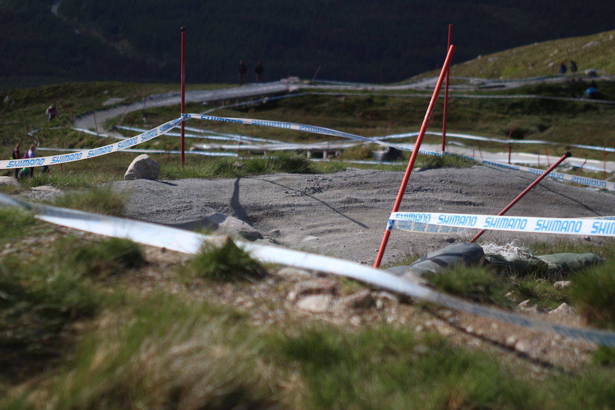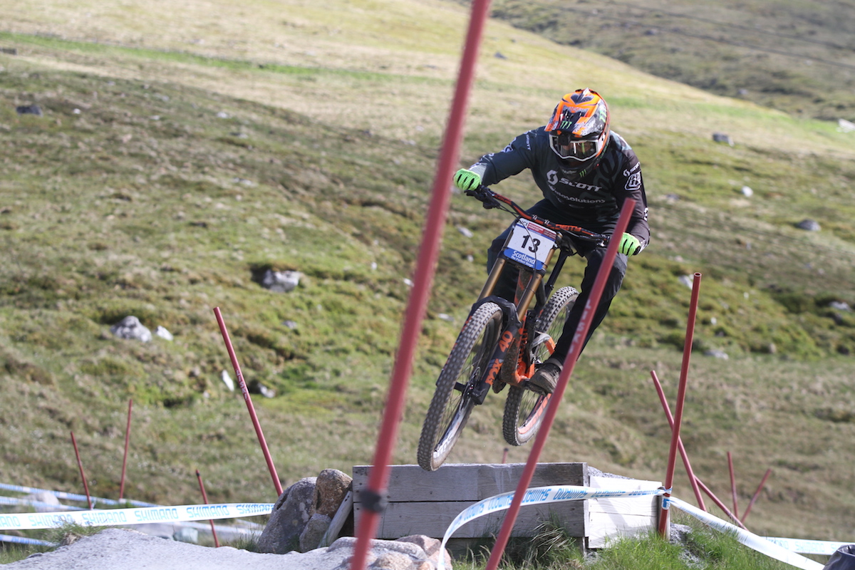 Riders waiting to drop in at the top of Fort Bill. Nerves breed like midges up here…Rachel Atherton sits at the top before her practice run. Looking calm, that’s for sure.The smiles continue with Laurie Greenland, who put down a blistering time to take top spot in timed practice.Jack Moir heads out of the start gate aboard his Intense alloy prototype 29er.The clock is ticking on timed practice as the top riders send it down the mountain.Jack Reading and his lead-equipped Nicolai Geometron flying through the rough stuff in the top section.Marshalls on course, with whistles at the ready and flasks of tea as standard.Loic Bruni shouts at fellow riders whilst the gonala comes to a halt.It’s the man-mountain himself, Sam Dale! Getting stylish through the rocks.