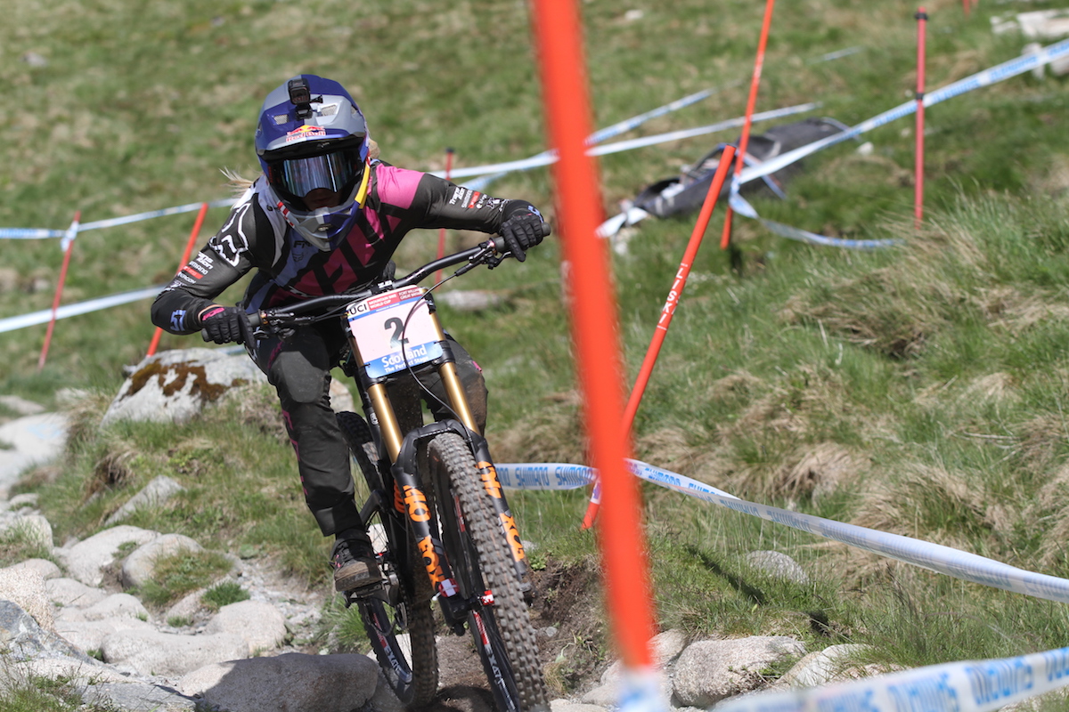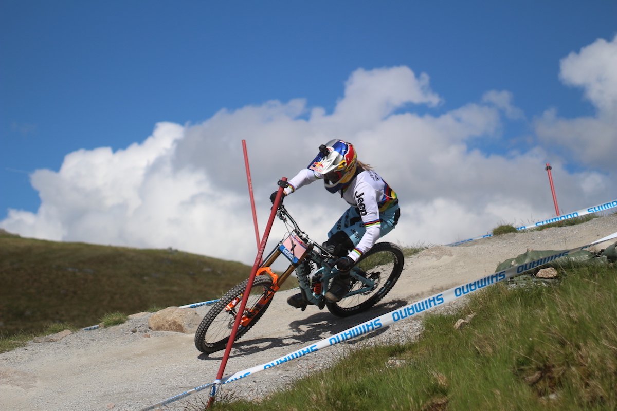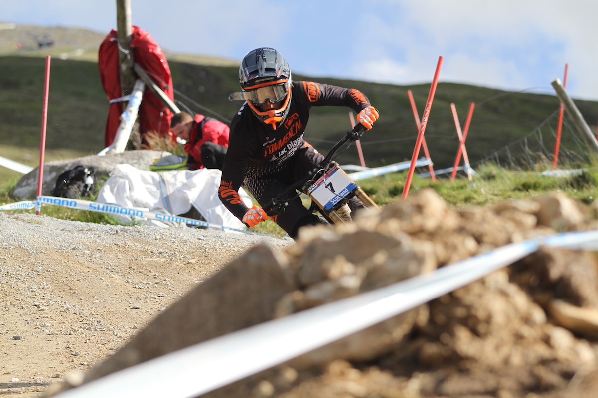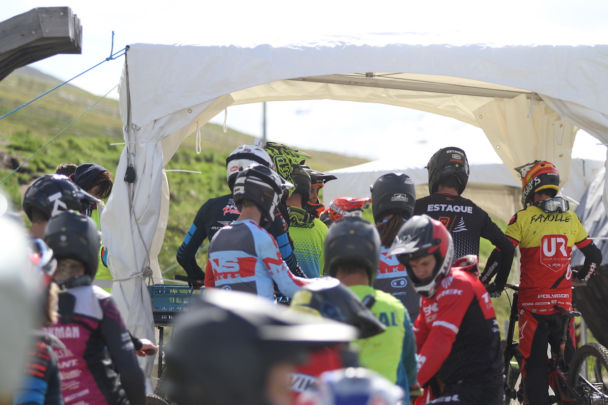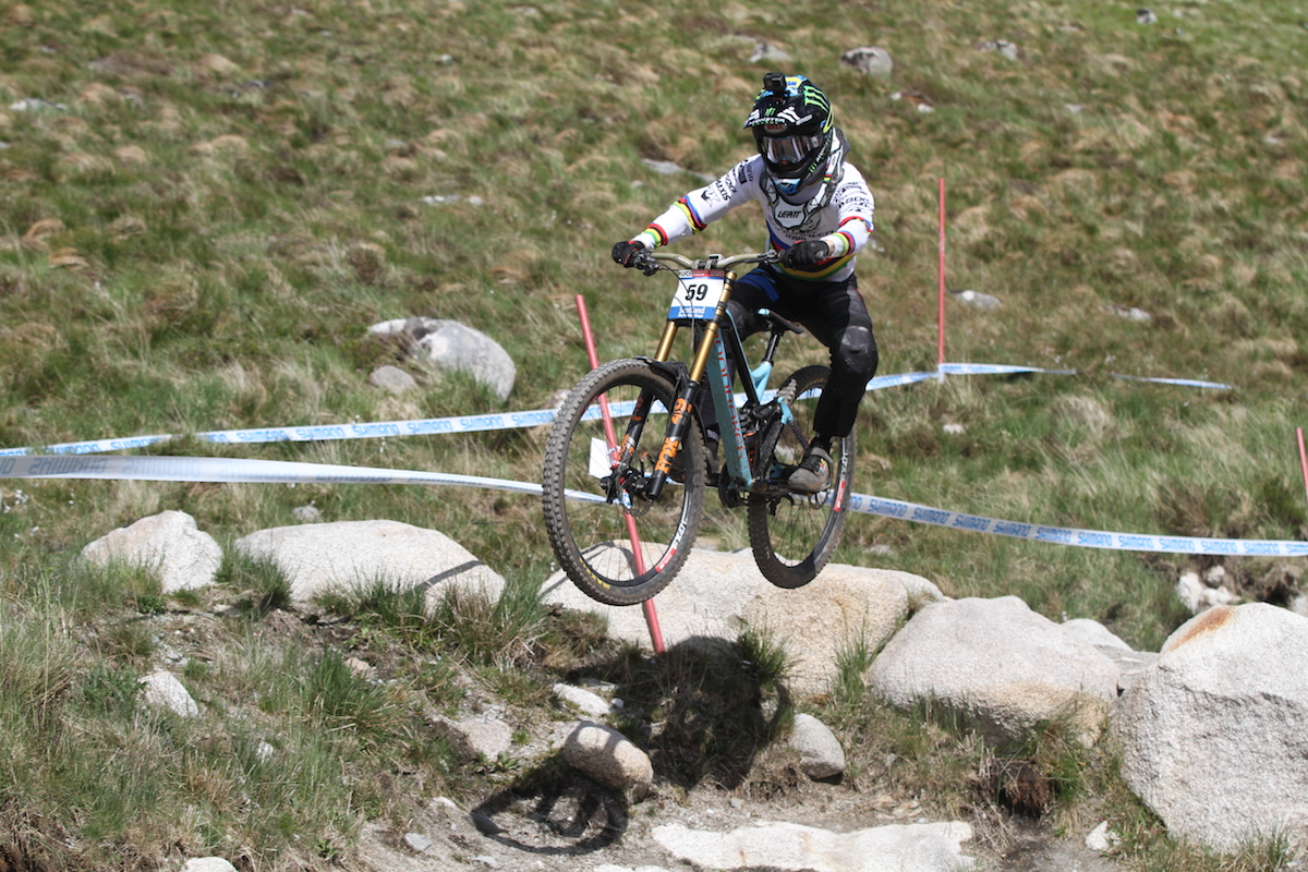 Riders waiting to drop in at the top of Fort Bill. Nerves breed like midges up here…Rachel Atherton sits at the top before her practice run. Looking calm, that’s for sure.The smiles continue with Laurie Greenland, who put down a blistering time to take top spot in timed practice.Jack Moir heads out of the start gate aboard his Intense alloy prototype 29er.The clock is ticking on timed practice as the top riders send it down the mountain.Jack Reading and his lead-equipped Nicolai Geometron flying through the rough stuff in the top section.Marshalls on course, with whistles at the ready and flasks of tea as standard.Loic Bruni shouts at fellow riders whilst the gonala comes to a halt.It’s the man-mountain himself, Sam Dale! Getting stylish through the rocks.