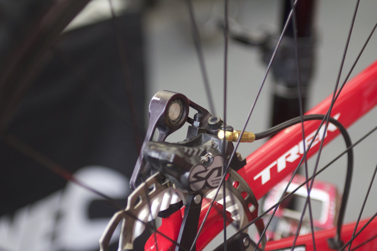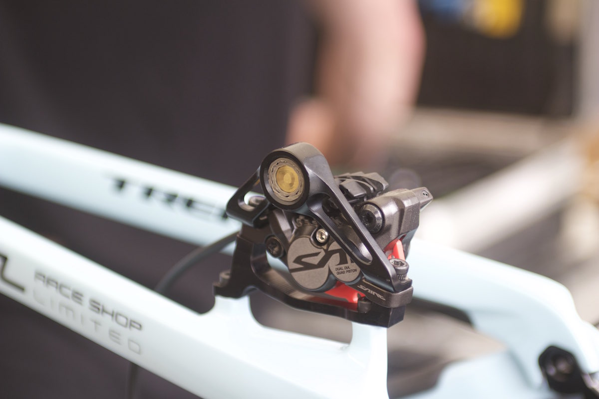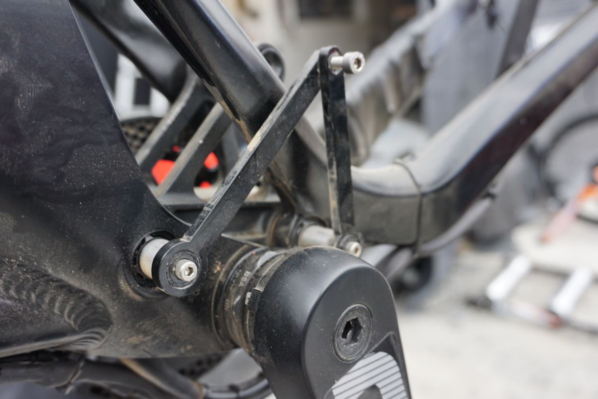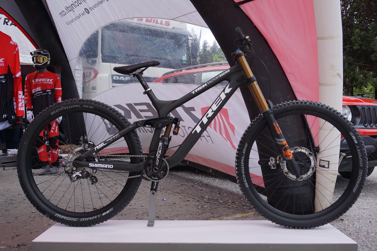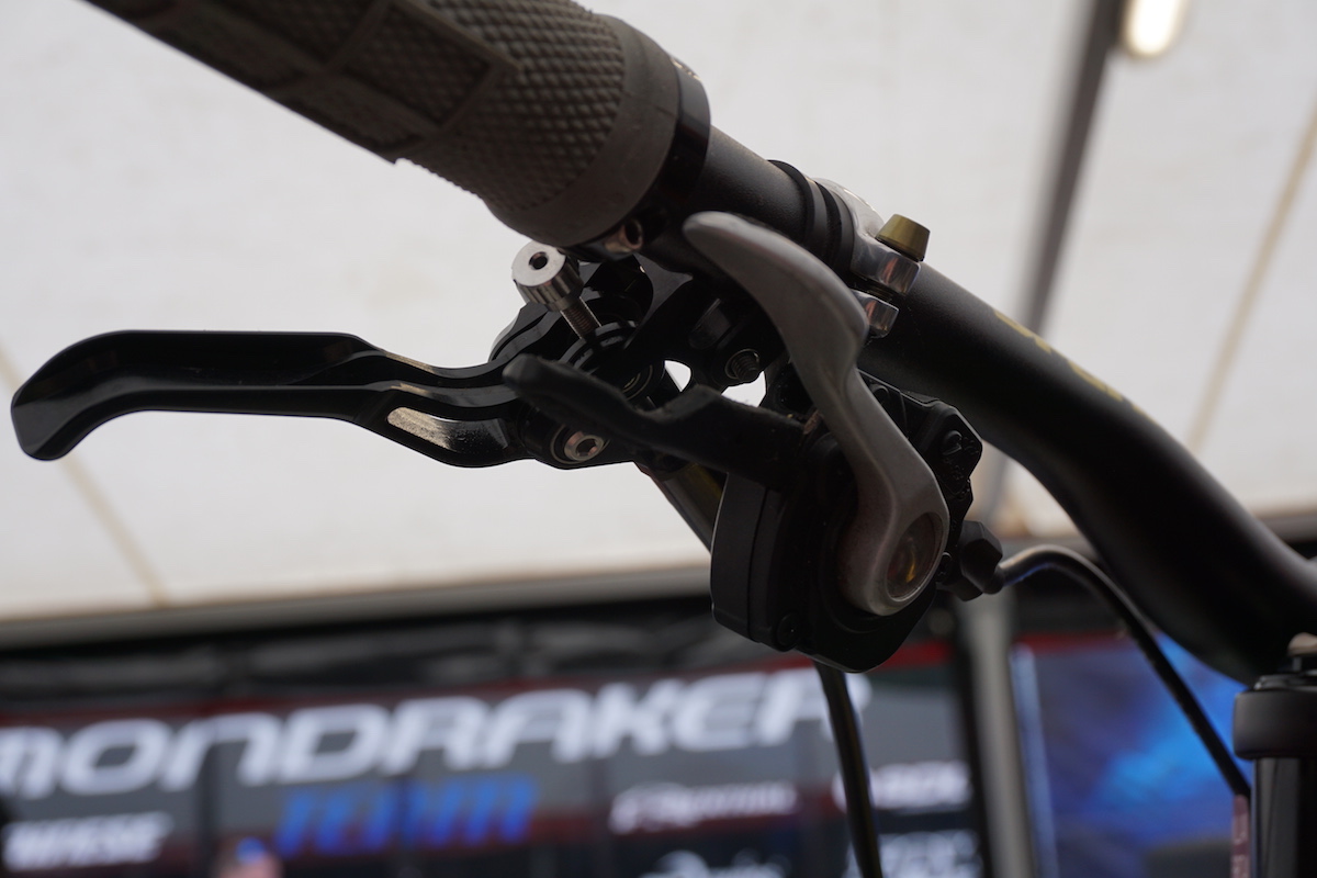 In the Polygon UR team pits, we spotted the Collosus DH9 downhill bike equipped with a rather strange-looking rear shock.The custom rear shock features a cable-activated arm that offers remote control of the compression damping.The shock is entirely custom, and it’s built by one of the team mechanics at Polygon.A standard Shimano XTR front shifter has been retrofitted to the shock’s remote lockout. Neat!Also in the Polygon race pits was this Collosus DH9 equipped with a full-blown telemetry setup for acquiring suspension data.A custom machined strut bolts onto the shock linkage to hold the piston rod for the telemetry unit.Tracey Hannah’s bike gets a tune-up in the workstand following her first practice run.Hannah battled traffic during practice day, but she was loving the course.Spank cockpit and Trickstuff brakes on Hannah’s Polygon Collosus DH9.German-made disc brakes from Trickstuff. According to the team mechanic, these are the best brakes they’ve used.Mick Hannah’s bike was getting a full rebuild, and we noticed some expanding foam inside the hollow downtube to help buffer the internal cabling to minimise noise and vibration. Quiet is smooth, and smooth is fast.Temperature gauge on the damper of Troy Brosnan’s RockShox Vivid Coil shock.Canyon brought double the number of spare wheels to Fort William. This track eats them for breakfast.Canyon head mechanic Nigel, has a very minimalist and lightweight toolbox for international travel.Bikes being checked for bar plugs before they’re allowed onto the gondola.There isn’t a lot of mud at Fort Bill this weekend, but what there is is sticky and stubborn.The privateer race pits are buzzing this weekend. Dedication from each and every athlete.The YT Mob is out in force this weekend, with the TUES carbon fibre downhill bike the chosen whip of team riders Neko Mulally and Aaron Gwin.The YT TUES team bikes are running powerful 4-pot TRP Quadiem G-Spec brakes.With 208mm of rear travel and 27.5in wheels, will the YT Mob’s TUES race bikes be able to match the speed of the 29ers this weekend?Speaking of 29ers, how’s the carbon Specialized Demo prototype that Loic Bruni is racing this weekend?Bruni’s bike runs a Joystick cockpit including a tidy direct-mount stem.Bruni gets his own signature lock-on grips from Lizard Skins. Like the rest of the Specialized Gravity Team, he’s also running Formula Cura brakes front and rear.Bruni’s also been spotted aboard this carbon demo equipped with full-blown telemetry setup.A custom carbon fibre back end on the computerised Demo? Note the sensor for the rear hydraulic brake line, and an interesting upper jockey wheel on Bruni’s rear derailleur too…Telemetry setup for the Ohlins dual-crown fork up front.Also in the Specialized race pits was this gold anodized fork from Ohlins. The Swedish suspension company is testing and developing a lot of prototype gear here at Fort Bill.The bike for one of the fastest mountain bikers on the planet.Gwin’s race bike is running Fox air-sprung suspension front and rear, with carbon E*thirteen wheels and Onza tyres.Gwin’s mechanic ensures everything is tip-top before practice.Preparation in the Trek Factory Racing pits.Rachel Atherton’s new Session 9.9 RSL gets a checking over following her practice runs on the mountain.Her brother Gee is out of action following a dislocated hip caused by a crash at the Fort William round of the British Downhill Series. So his teammate Graeme Mudd has borrowed the Session 29er for a blast this weekend.29ers are changing the game on the downhill World Cup series. The riders on the big wheels are looking FAST!Also spotted in the Trek race pits was this interesting device mounted to the rear disc brake callipers.Turns out it’s a brake silencer. Using a machined alloy housing, the unit holds a brass weight suspended inside an elastomer ring that helps to dissipate vibrations to allow for a quieter bike with less braking noise. According to the team mechanics, it plays a large role in helping riders concentrate on the trail ahead.Aussie fast man, Sam Hill, took a break from the Enduro World Series to race the Fort Bill round aboard his Nukeproof Pulse.Sam Hill may not be a regular sight on the World Cup downhill circuit anymore, but people notice when he does saddle up on the start line.Sam also had his Nukeproof Mega 275 on display at Fort Bill, complete with moto guards for the brake levers.The Mega 275 that Sam is racing on is a prototype carbon fibre bike – essentially a carbon version of the existing alloy Mega 275. We’re eagerly awaiting for more details on the new bike, but for the time being we can ogle at its lovely lines and that sweet custom mudguard on the rear.Mechanics are flat-out at Fort Bill, keeping racer’s bikes in race-ready condition all weekend long.How’s this setup for the Dude Of Hazzard himself; Joe Barnes?Juliana released the brand new Strega on Thursday, and Santa Cruz had one on display at the Fort William World Cup. The 170mm travel beast looks mean in the flesh.The new Nomad also made a cameo, in that discreet ‘Ink’ colour that is our pick of the bunch.A closer look at those new Santa Cruz carbon wheels.The rulers are out!Young Frenchman, Loris Vergier, gets a final check on his prototype Santa Cruz V10 29er.Seen out the back of the Syndicate race pits were these funny-looking e-bikes.Cube’s Greg Williamson is ready to take his Two15 downhill bike up onto the chairlift and onto the brutal Fort Bill track.Who does this belong to then?That would be Tahnee Seagrave, who’s rocking a carbon fibre prototype Transition downhill bike this weekend at Fort Bill.‘Quick, into the workshop!’Patriotic spoke nipples on the Novatec wheels of Connor Fearon’s Kona Operator.Brendog is testing a prototype linkage on his Scott Gambler race bike. The plates offer a much harder ramp-up at the end, which means the bike sits deeper into its sag too.The Gambler frame offers adjustable c