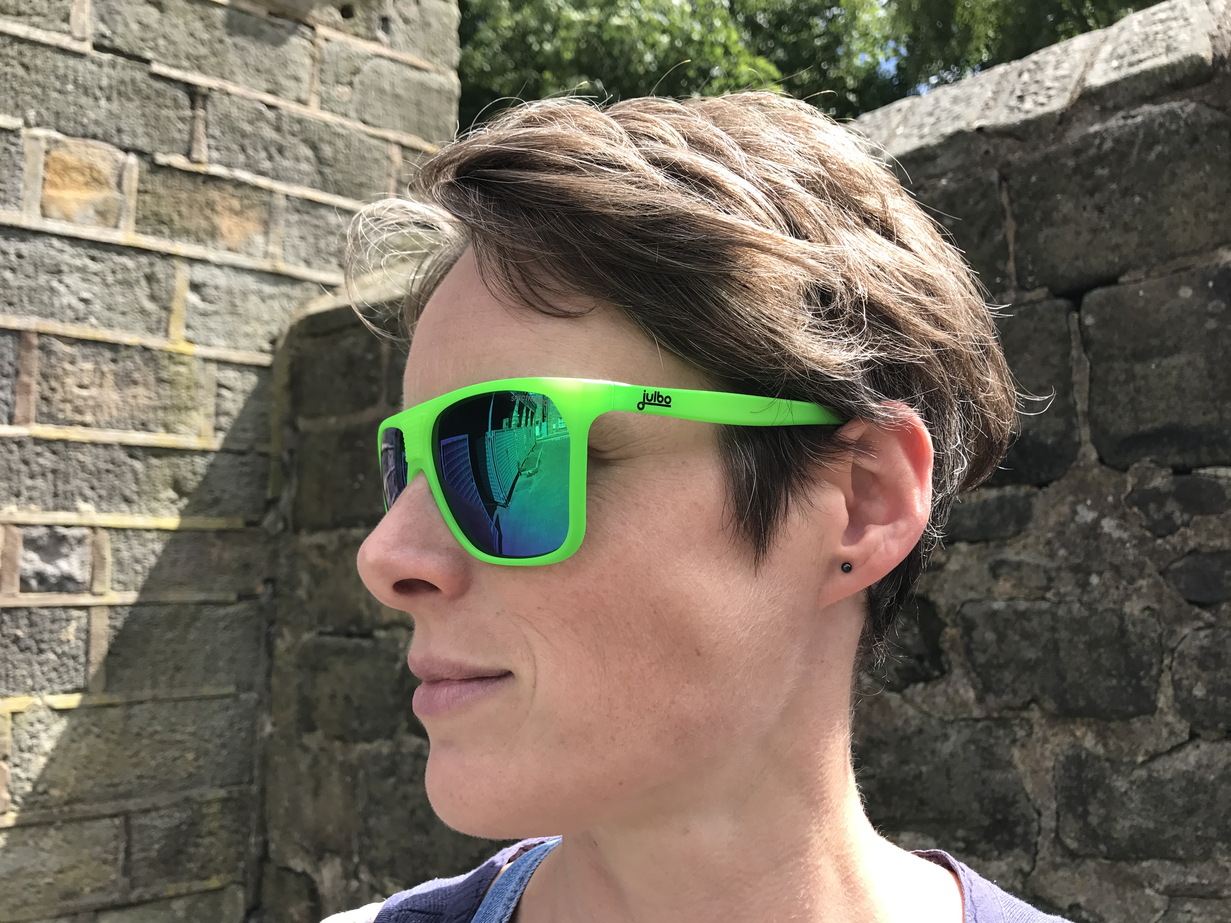 Casual sunglasses in retro 1980s style from Julbo, which came in Hannah’s goody bag from the Enduro Jura race. Actually, that’s not quite true – there was a choice of these or black frames to put into your goody bag, and Hannah choose these. If you buy a pair of these, a percentage of the profits goes the charity “Des yeux pour le monde” (Eyes for the World, for all those who weren’t paying attention at school)