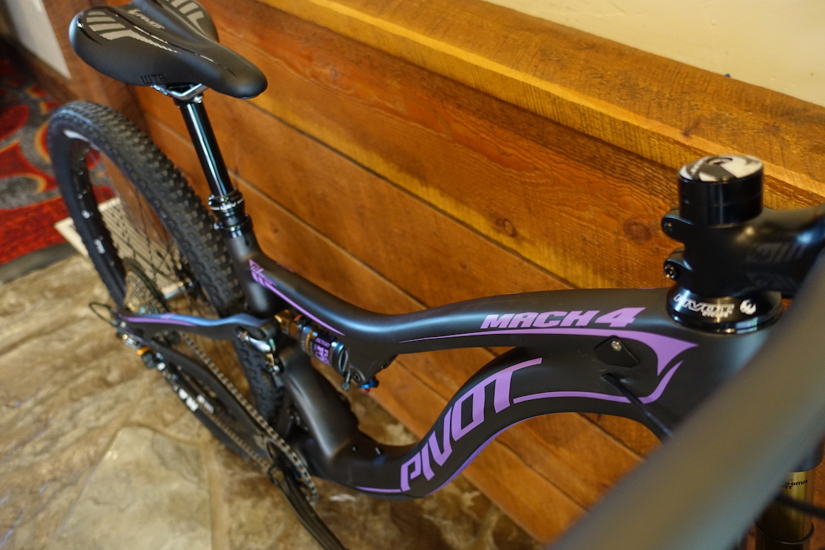Oh and here’s something that’s also cool. Pivot doesn’t make a women’s specific frame – they believe that a bike shouldn’t be designed differently simply because of gender, and instead prefer to engineer the smaller frame sizes to provide more standover and a lower cockpit height that naturally fits shorter women. However, this geometry also suits shorter men too. Regardless of rider height however, Pivot offers the option to spec a women’s specific saddle and shorter crank lengths should the customer wish to spec them – and you can get that on an XS size, or on a Large size.