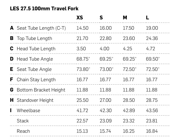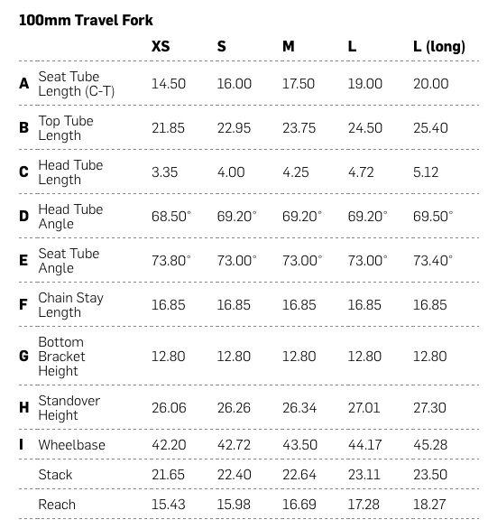 - 69.25º head angle (Medium frame w/100mm travel fork)