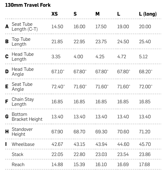 - 67.85º head angle (Medium frame w/130mm travel fork)