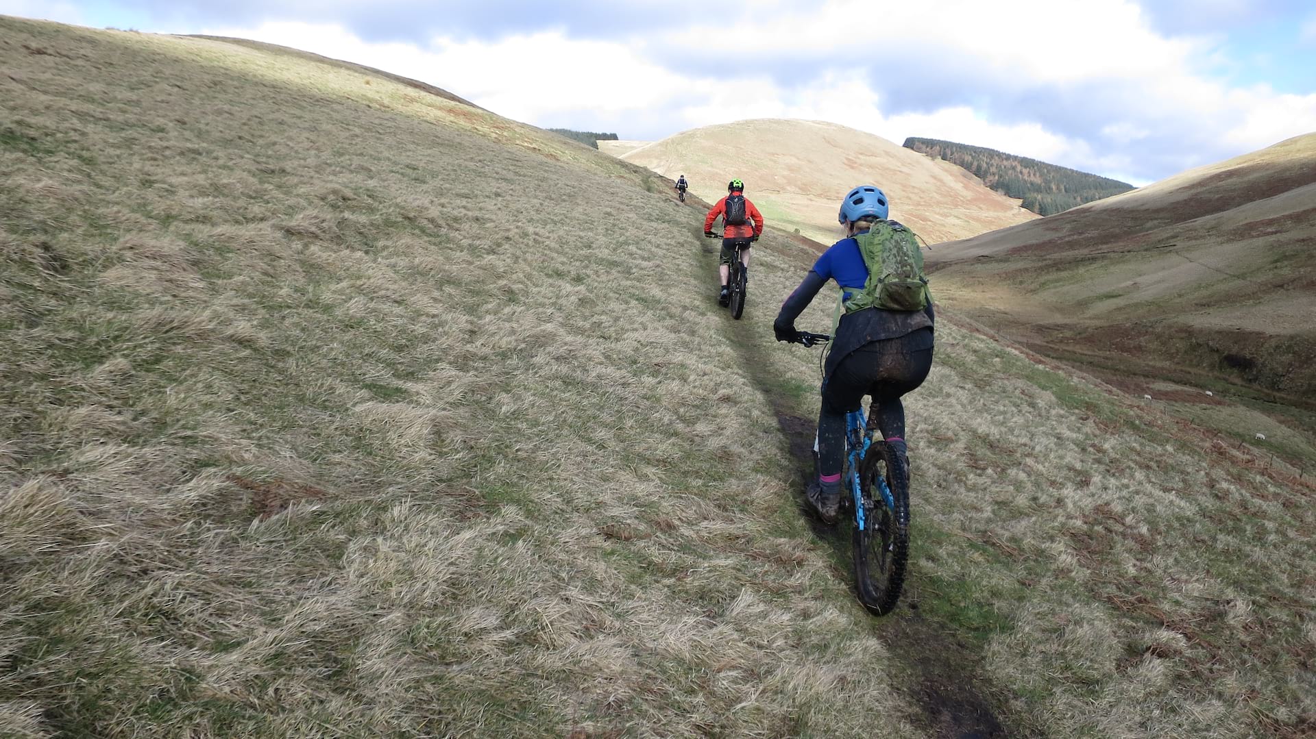 Due to forestry operations closing one vital trail, we cut our route short and missed out the loop which descends to Barrowburn. Signs posted by the Forestry Commission say there will be forestry work in this area until September 2017 and this might entail the closure of certain trails at times. If the trail is open, the descent to Barrowburn is amazing – fast, twisty and scenic.
