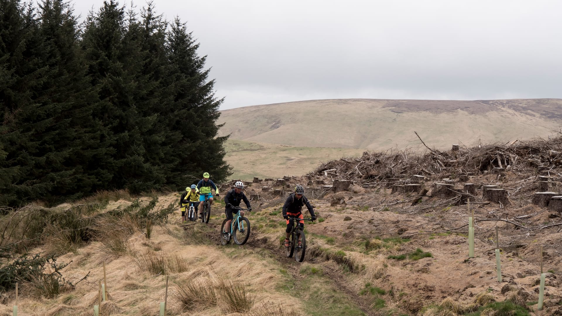 As we near the end of the valley, its character changes and we go from steep-sided grassy valley to a man-made forestry plantation. Unfortunately the timber has been fairly recently stripped out, which isn’t the most beautiful sight, but luckily the trail that runs along the base of the forest has been left intact. This trail is completely different to anything else on the ride in that it’s narrow, root infested and quite techy. There’s enough flow to make it fun, but you have to work for it – if you let your speed drop too much you hit every root and it feels like hard work. But if you’ve got the legs to give it some speed, you can use the terrain to your advantage and the roots give you enough of a kick to fly along happily. My southern wood-riding heritage comes into play here and I’m soon hitting warp speed, grinning manically as I pop from root to root.