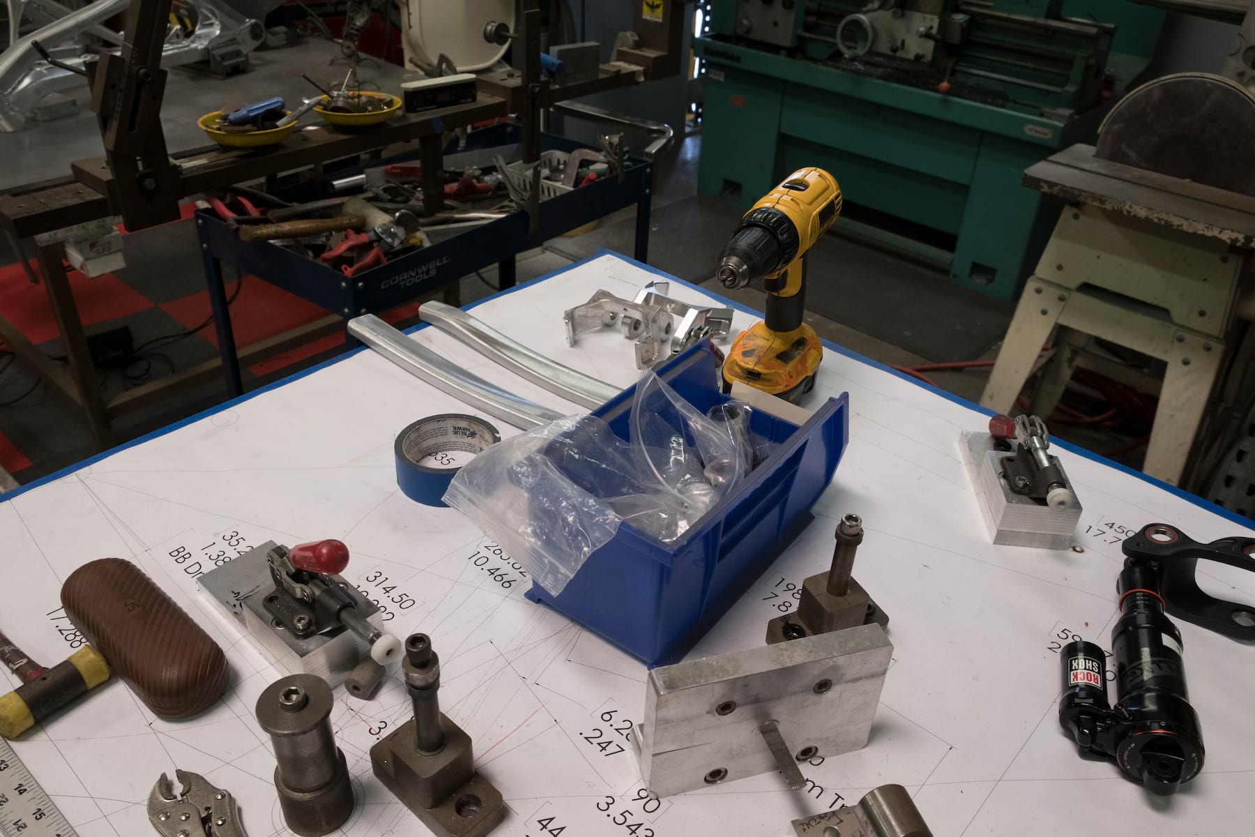 Jeff will start with a selection of tubes, both round and hydroformed depending on where they’re going. This won’t affect the shape of any finished carbon frame – both materials have their own advantages and Intense will build each to those strengths. Jeff’s test mules are used more to check suspension action and component fit than for aesthetic delight. Several of these prototypes can be built up, perhaps with slightly different reaches or angles.