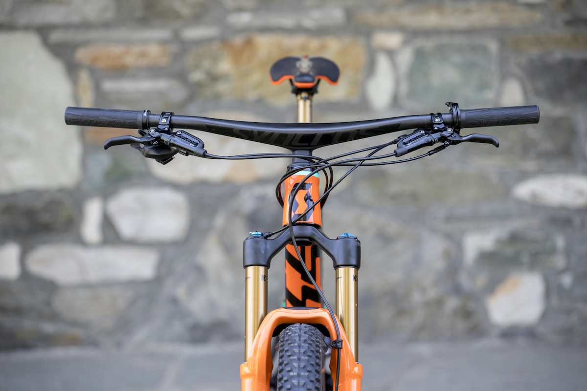 To go along with the new Genius, Scott has teamed up with its component brand Syncros to debut several new high-performance parts. The Hixon is a stunning carbon fibre creation that combines a handlebar and stem into one to create a lighter, stronger and cleaner cockpit. Weighing in at just 290g, the Hixon uses a 760mm width with the option of 40mm, 50mm and 60mm lengths.