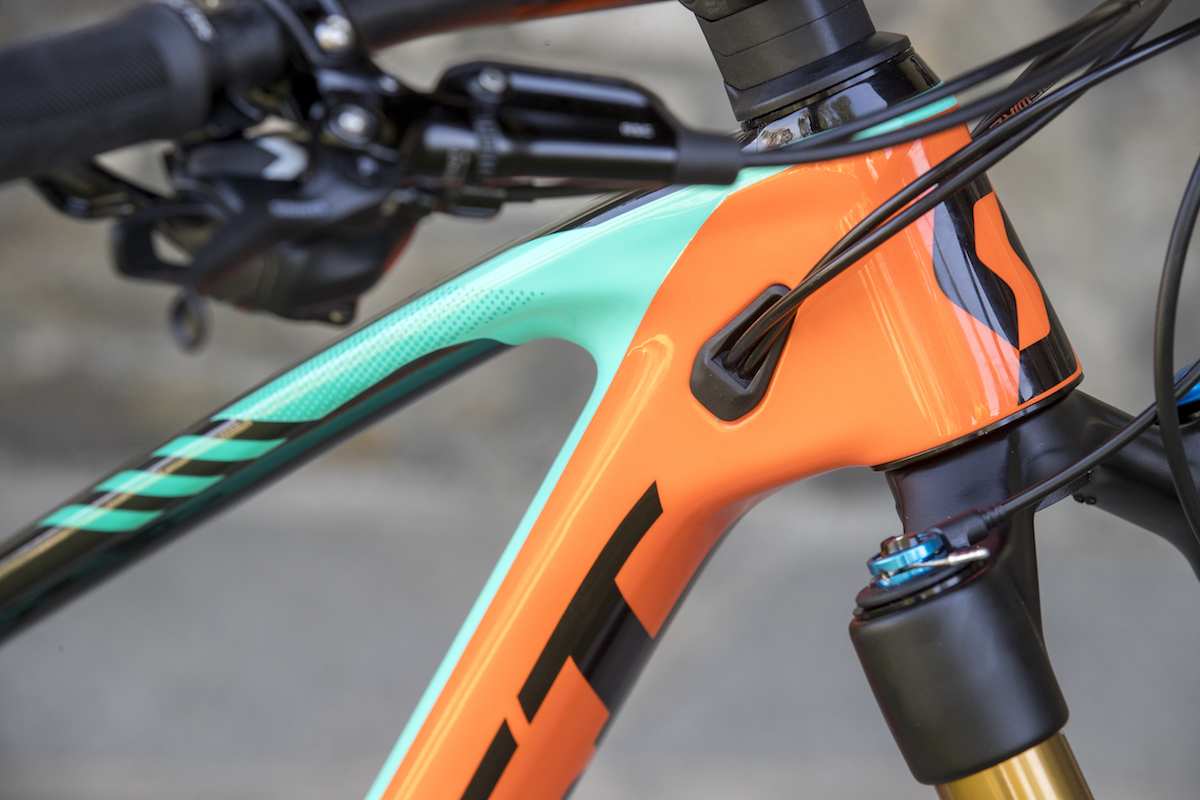 With six cables coming off the front of handlebar, Scott has done well to manage all of those cables. For the rear brake, derailleur, dropper post and rear shock lockout cable, they all run straight into the downtube via the ports behind the head tube.