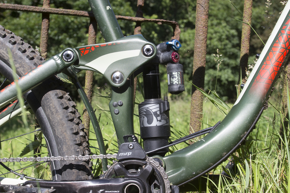 Because the fork is a travel-adjustable Talas model, you can’t use a ShockWiz on there, so it involved a greater degree of trial and error. Eventually we settled on 105psi inside the main air spring, and a rebound setting to match the deep-feeling rear travel. This gave me much more confidence on the bike, with it feeling like it was absorbing the bumps beneath me without diving through the travel or bouncing me off on the return stroke.