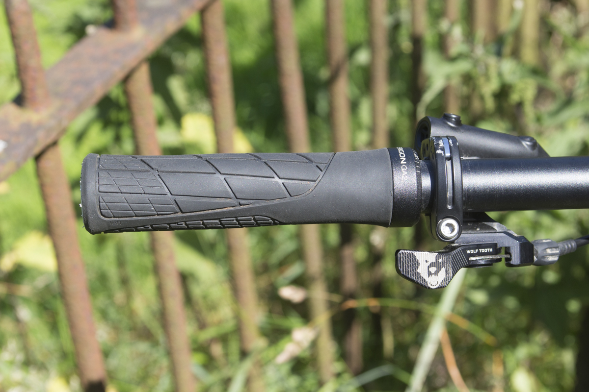 The Giant dropper post had become sticky and had a fair amount of play in it, plus I found the actuator to be difficult to strike quickly. The remote was swapped for a Wolf Tooth ReMote, which was beautifully smooth and easy to operate – like soft margarine compared to the cold butter of the Giant stock version. The dropper itself was less sticky, and returned faster after greasing, but the sideways play remained and I’d be looking to swap this out for something with less of an annoying wiggle were I to be keeping this bike for longer.