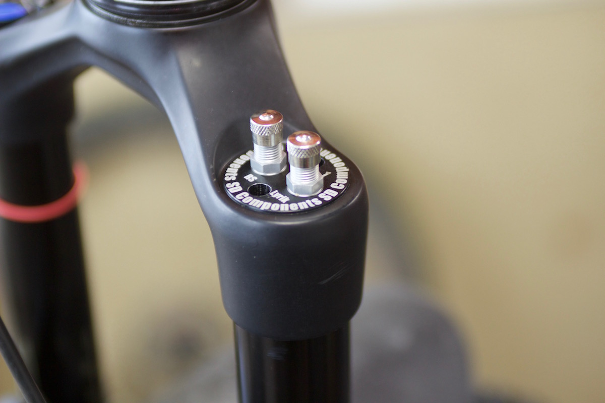 Like the MRP Ramp Control unit, the DVC is designed to replace the stock top cap and Bottomless Token system. However, it’s function is different. It’s a sealed air chamber, and it features two valves on top – one to adjust the positive air pressure inside the fork like you normally would, and a secondary valve that adjusts the air pressure inside the DVC.