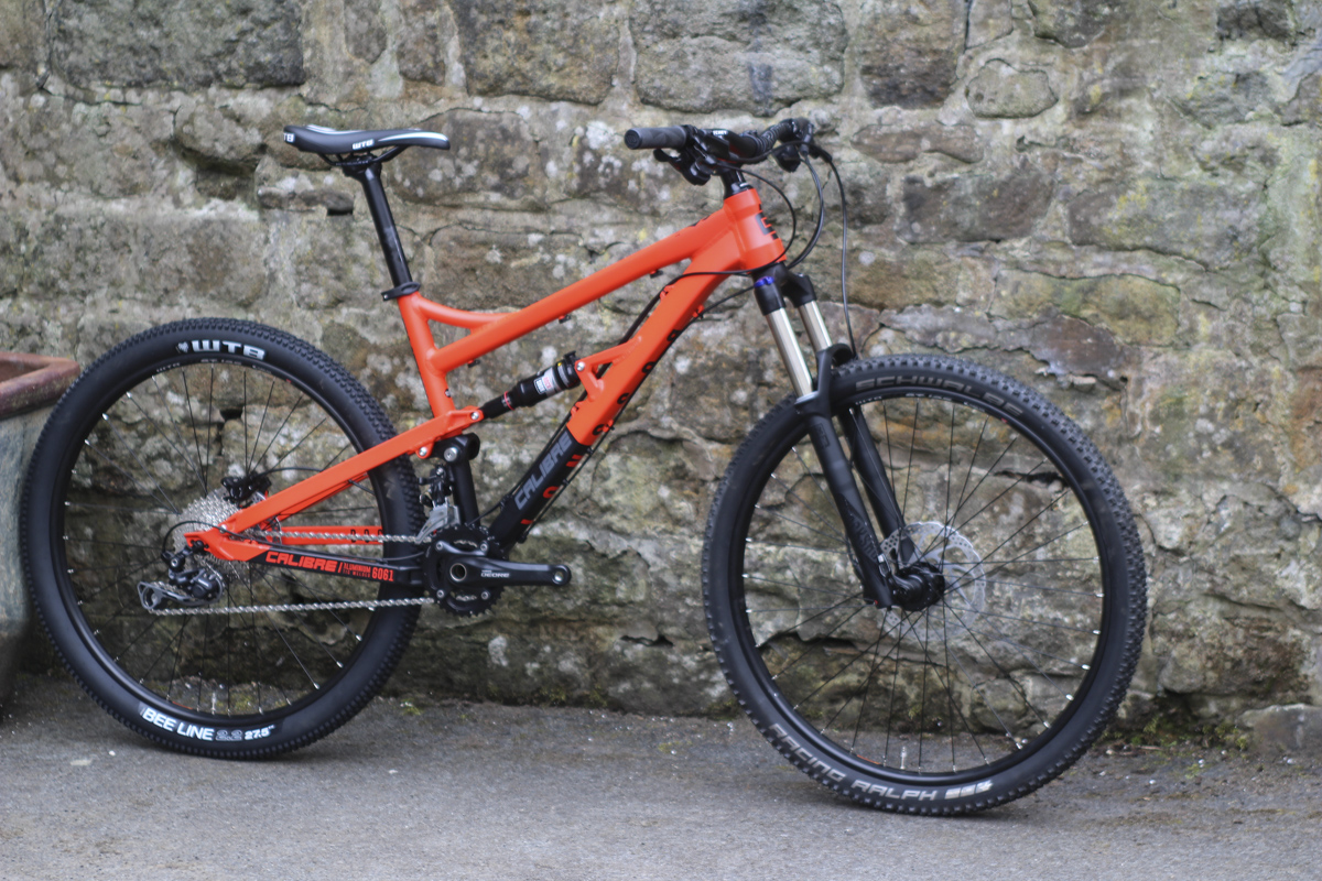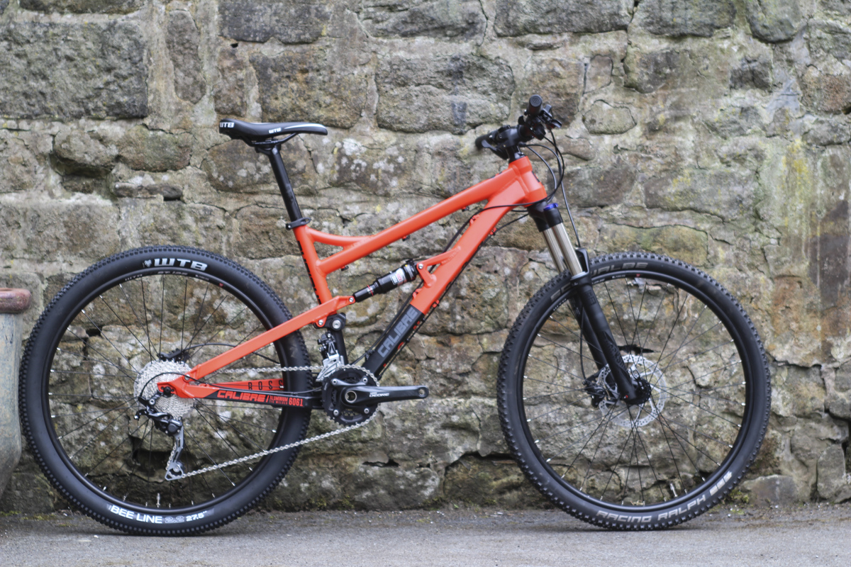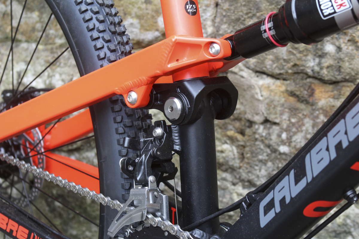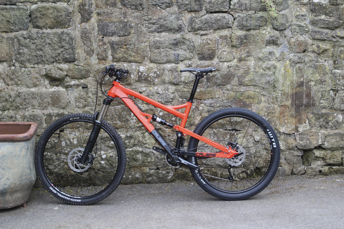 “The frame of the Calibre Bossnut V2 has increased its lateral stiffness with the introduction of a one piece rocker link, which in turn has given greater clearance for a larger rear tyre – great for those UK winters. It now has wider WTB tubeless ready rims that give an overall stronger wheel, and more importantly a better tyre profile to allow more control and grip. The effective top tube of the bike has been stretched a little; this gives more room to maneuverer and allows a shorter stem which gives better steering control and confidence in steeper terrain” – From Calibre.