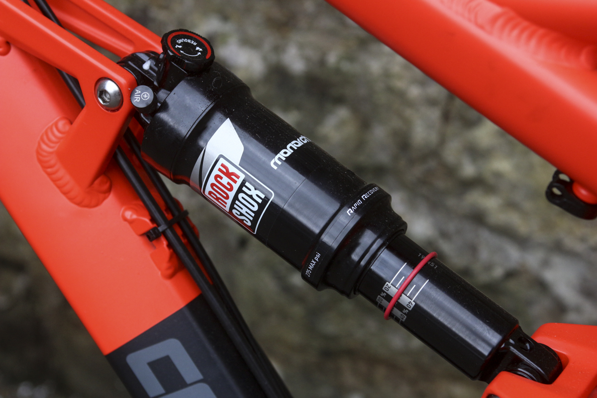 With a sticker price of £1300, the Bossnut is rather tasty value for a full suspension trail bike – and especially one that’s wearing air-sprung RockShox front and rear, a Shimano Deore 2×10 drivetrain and Shimano hydraulic disc brakes.