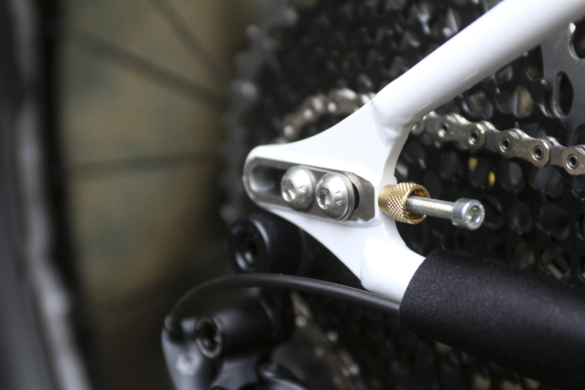 Along with the sliding dropouts and the ability to take 29in or 27.5in wheels, Trillion is keen to flaunt the versatility of the Prime chassis. Of course with the 44mm head tube, there’s room to slide in an angle-adjustable headset, so further tweaking can be had with the head angle and frame geometry for those who feel the need to.
