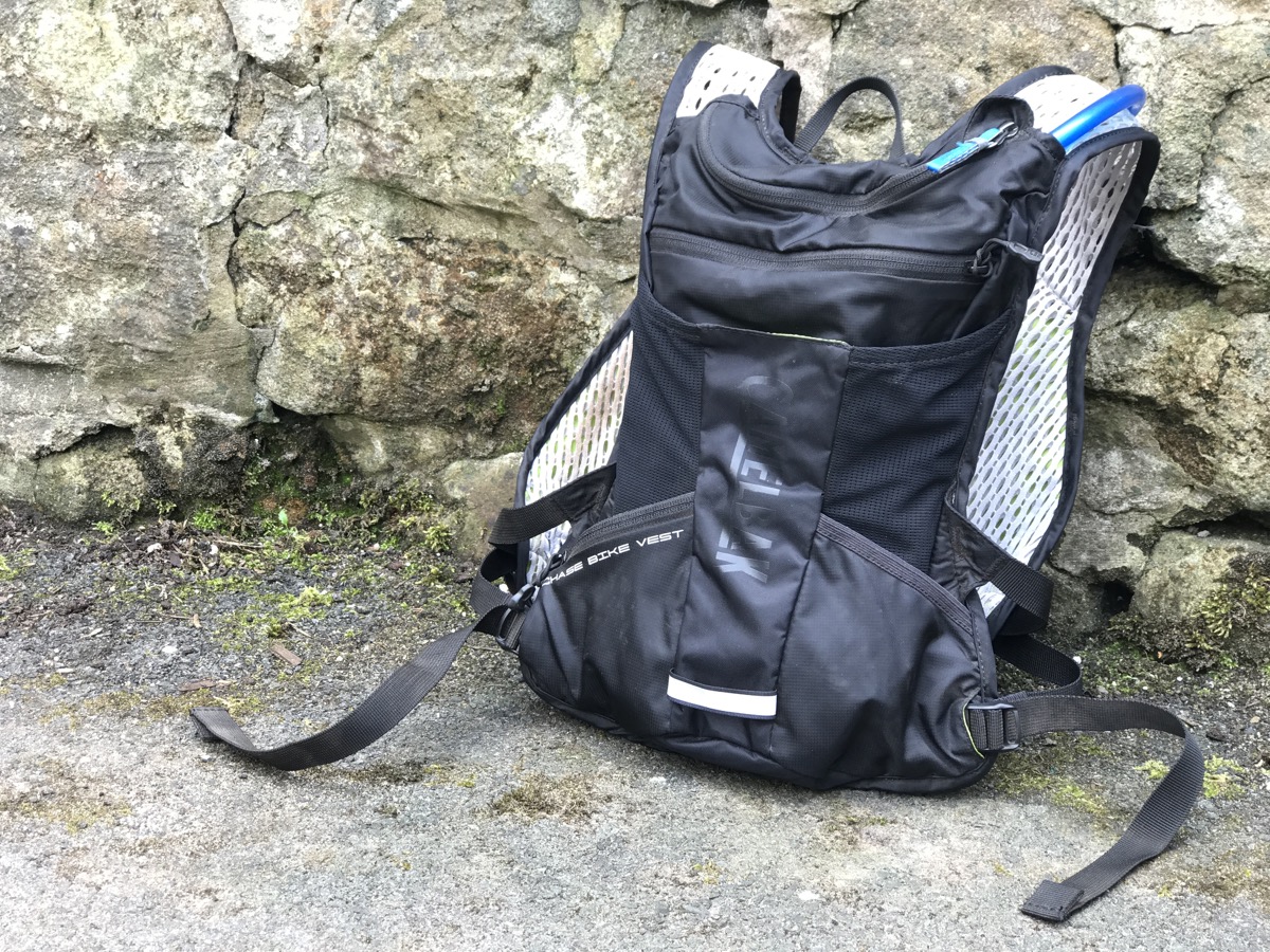 With a smattering of dust from PressCamp, this lightweight (330g) minimalist alternative to a bum-bag will take a 1.5l reservoir plus gives you another 2.5l of storage space. The straps feature some fairly sizeable pockets, so you can fit a number of key items like a multitool or jelly babies into these, so there’s no need to take the pack on and off to access things.