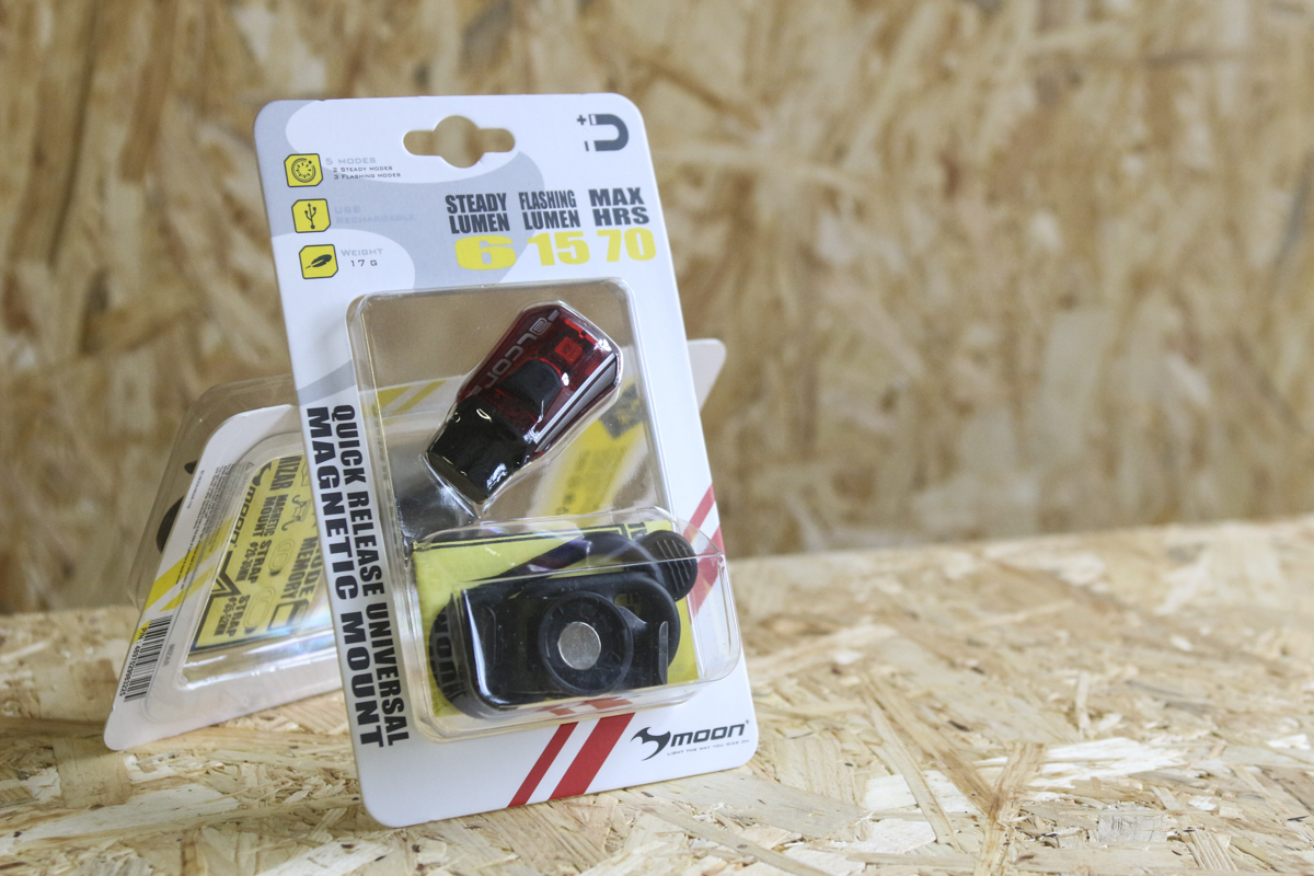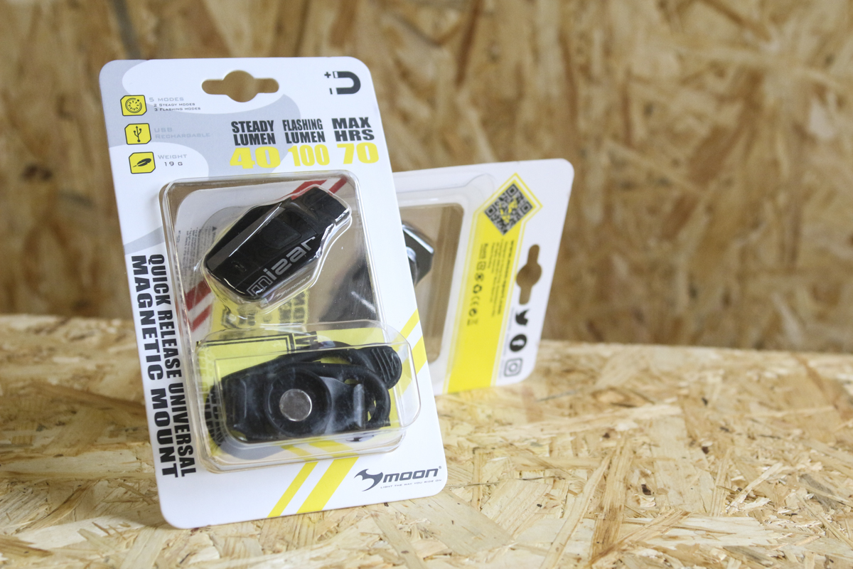 The rear light offers a maximum 15 lumens of light in flash mode, and 6 lumens in steady. Both lights use a magnetic mount and rubber strap to fix the light onto your bike.