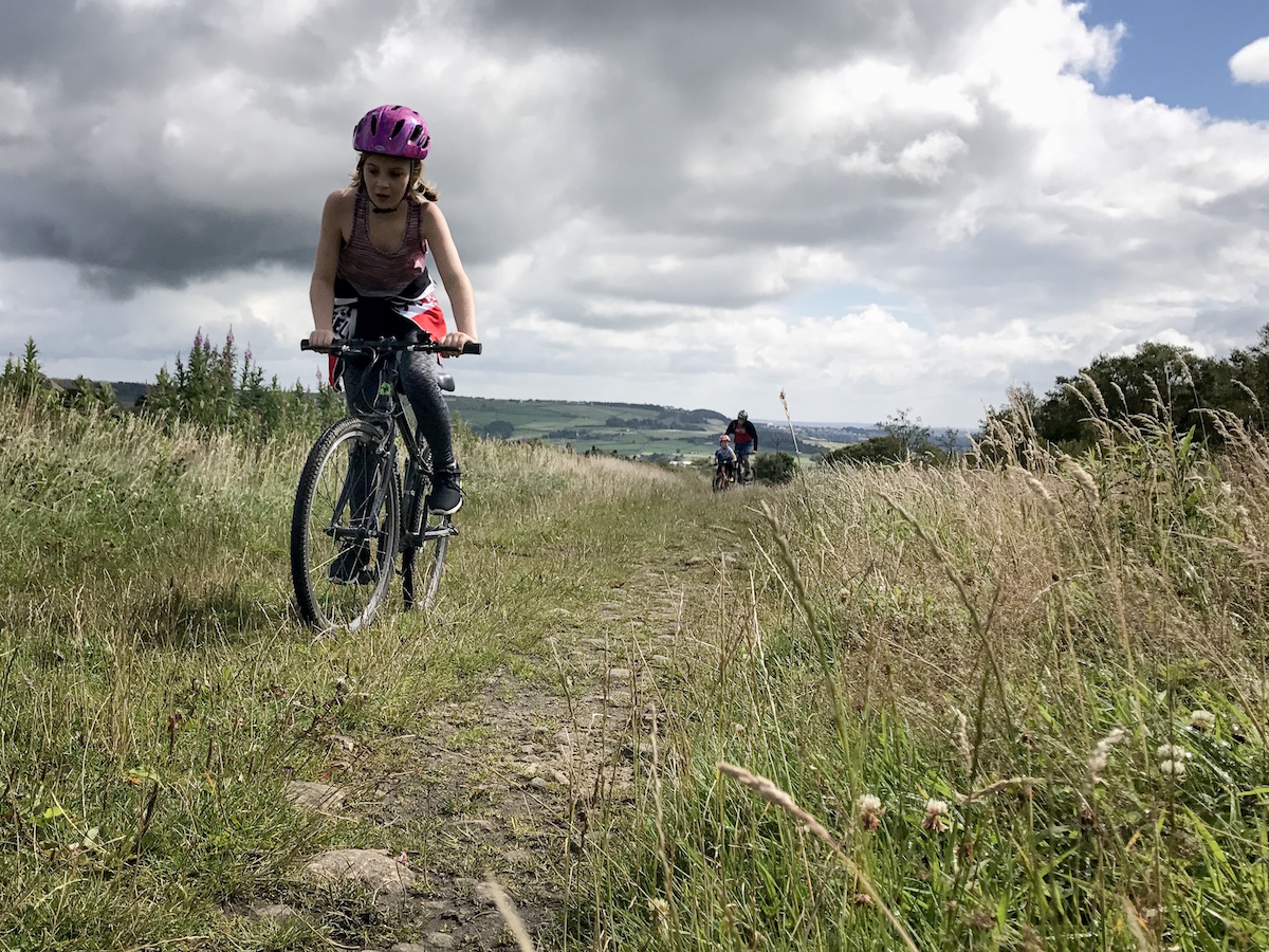 “A family bike ride. They moaned on the ups, the emergency kit Kat was deployed, and then they whooped down the descents and slithered through the mud. Fun was had by all, though a few fewer trail cows wouldn’t go amiss next time. Cows are very big” – Hannah.