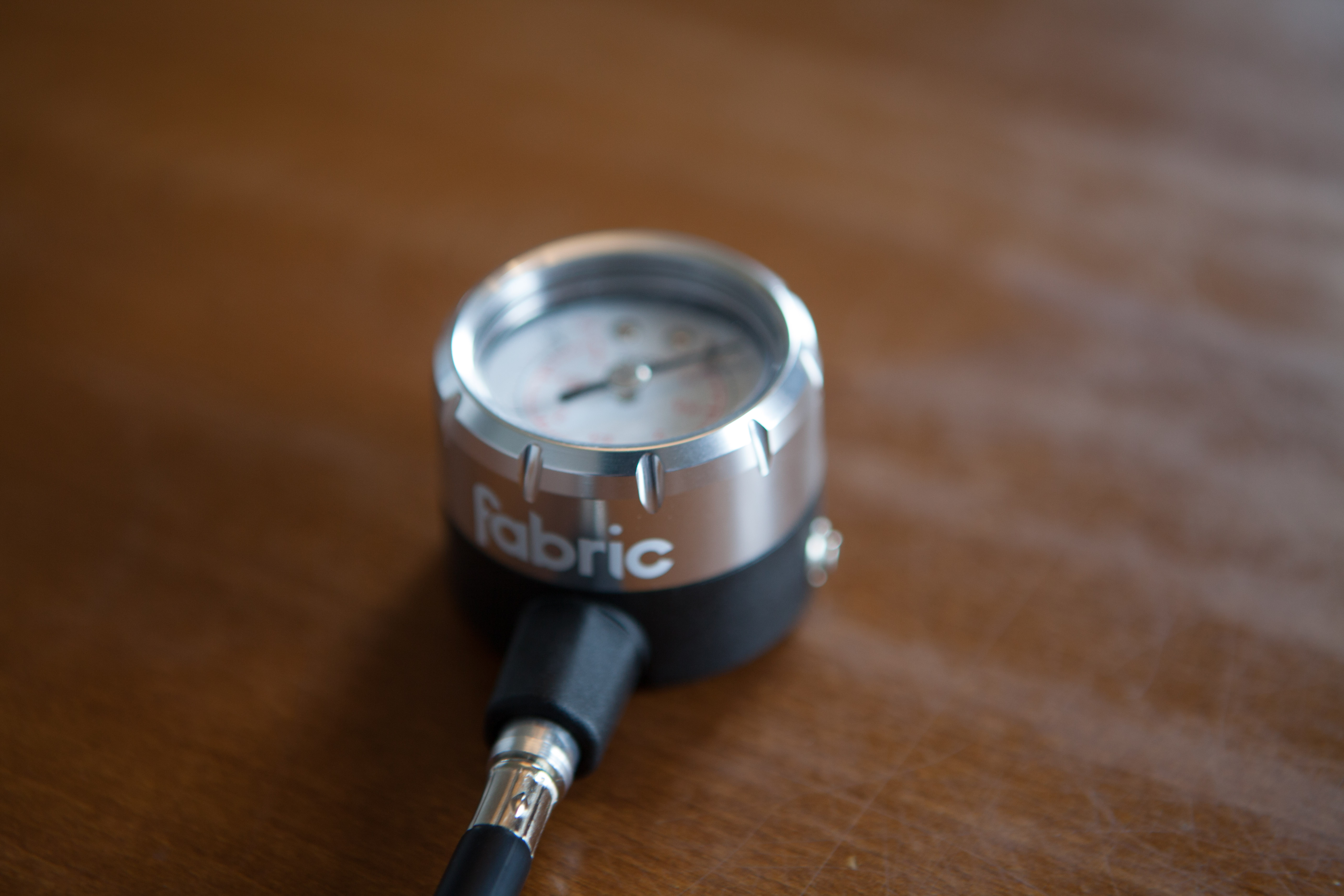 Possibly the most interesting new products we were treated to is the Accubar tyre pressure gauge. Ok, ok, ok… possibly not that interesting to everyone, but if you geek over whether to run 24 or 25psi in your tyres, or get frustrated at the variation in pressure readings across your pumps, then read on. Track pumps are typically designed to cope with road bike pressures and as a result, their accuracy is heavily compromised at the lower pressures us fat-tyred riders require. +/-5psi isn’t unusual tolerance-wise below 40psi, so in step Fabric. Rather than creating a whole new track pump, they recognised that most people already own one, and so have created this adapter. It also works equally well with mini pumps.