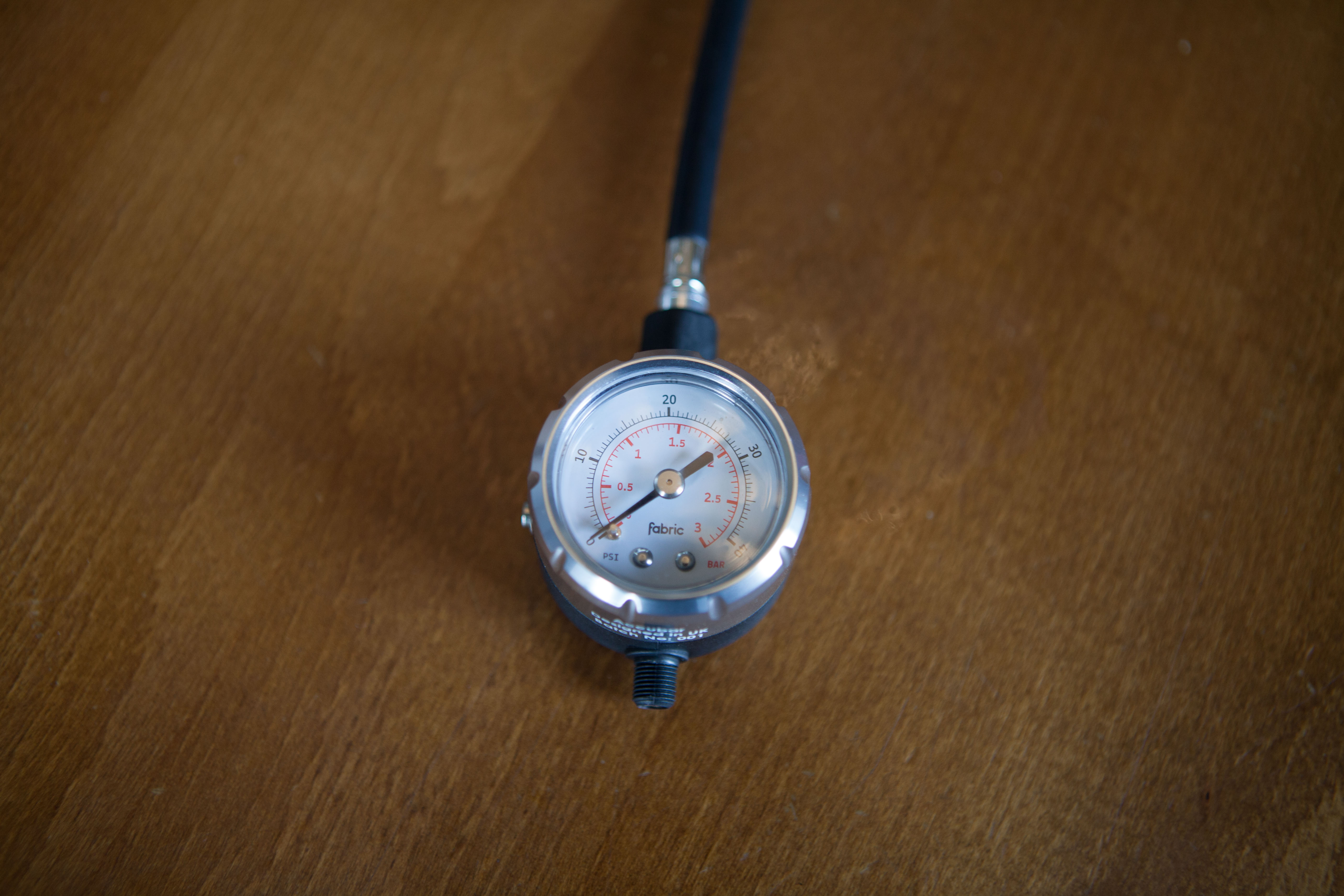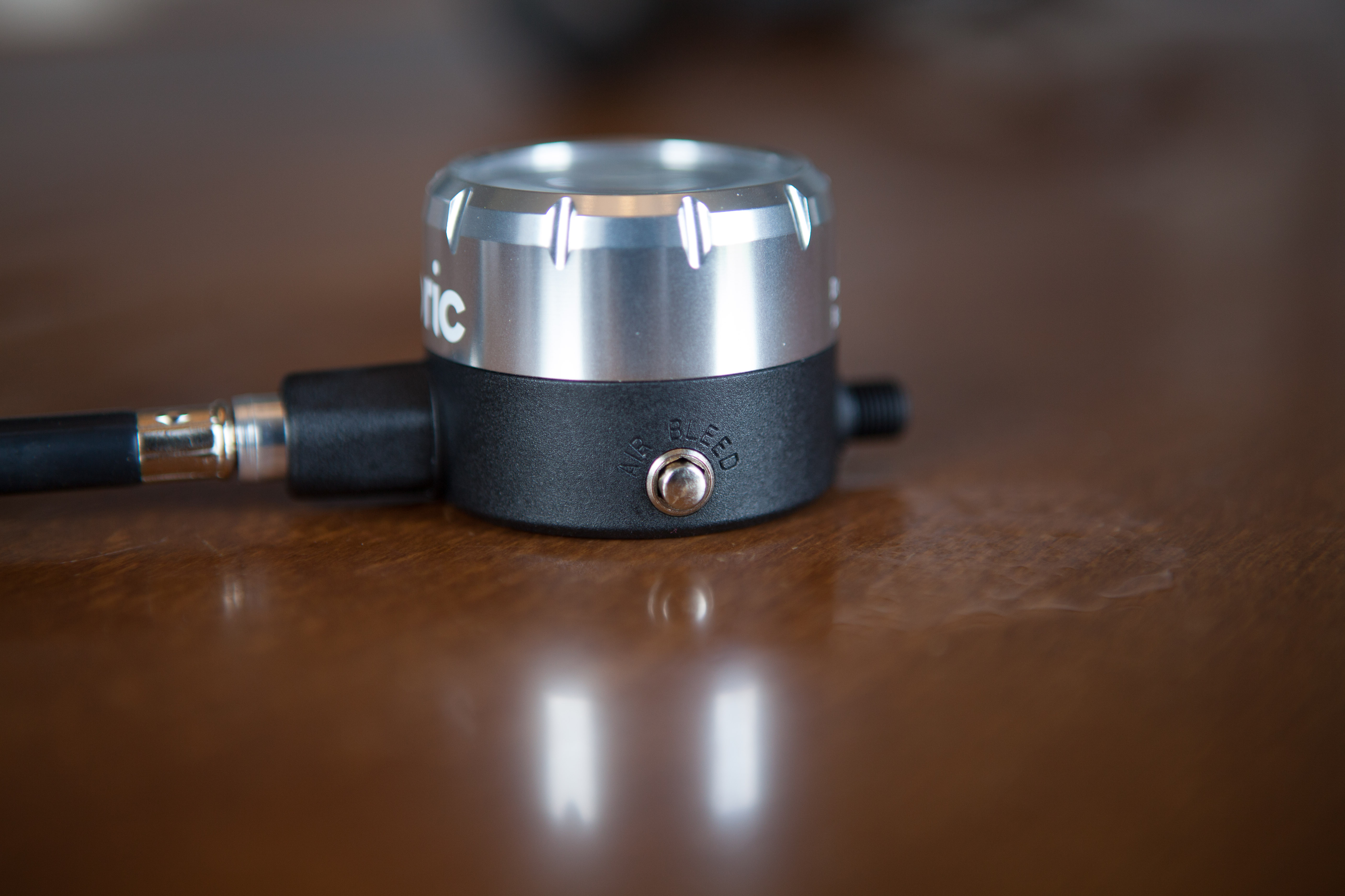 It works in one of two ways. You can fit it to your existing pump and use it to get a more accurate reading while inflating tyres (Fabric claims it is calibrated and checked to +/- 0.5psi tolerances). Alternatively, you can pop the adapter on to a ready inflated tyre – once you have seated your tubeless tyres, possibly. It will automatically dump any excess pressure and take the tyre down to 40psi. There is then a pressure release valve to allow you to fine tune the pressure down to your preferred level.
