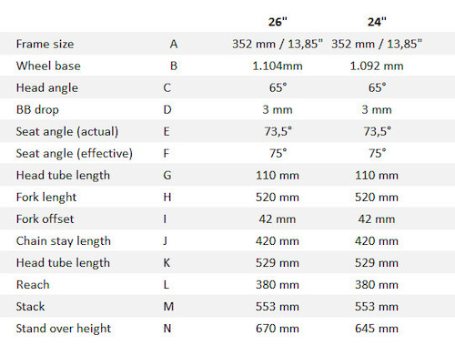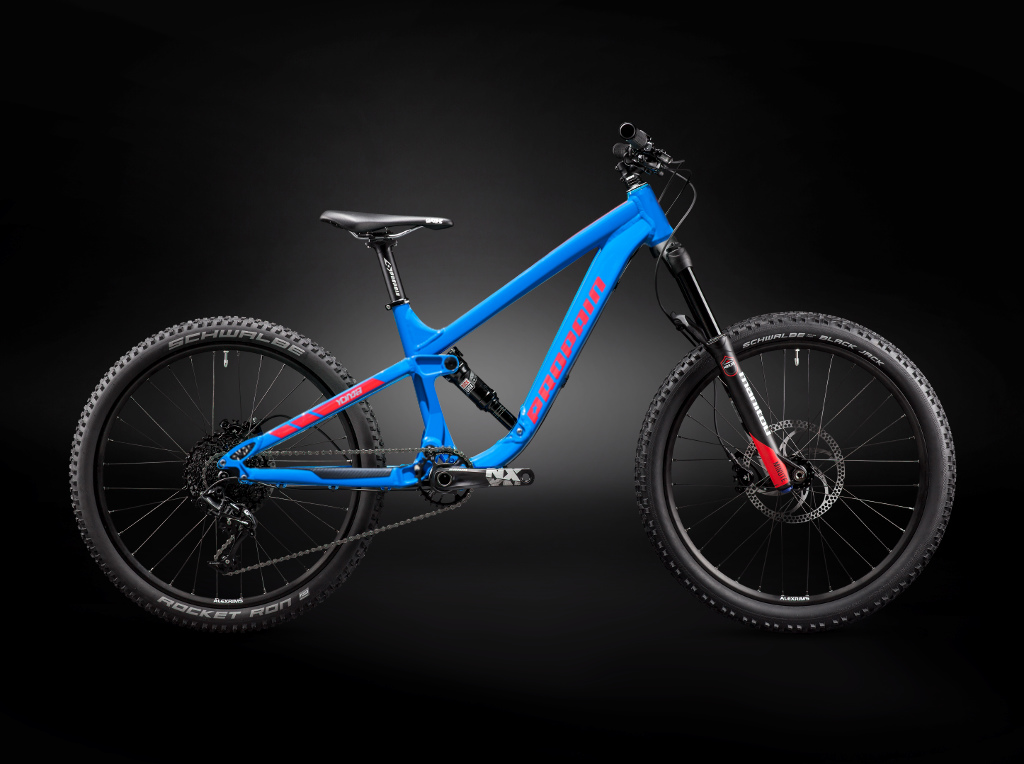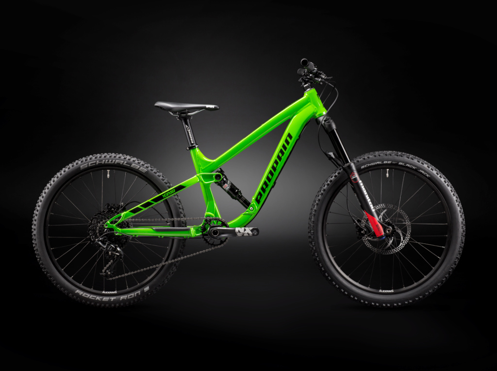 Behond the Yuma! It’s designed to take 24″ or 26″ wheels, so for at least a while, growth spurts won’t make it redundant.The single pivot linkage keeps weight down, which is all important for a kids bike.Trunnion mount metric shock helps keep the top tube low, and 1×11 drivetrain means no compromises.