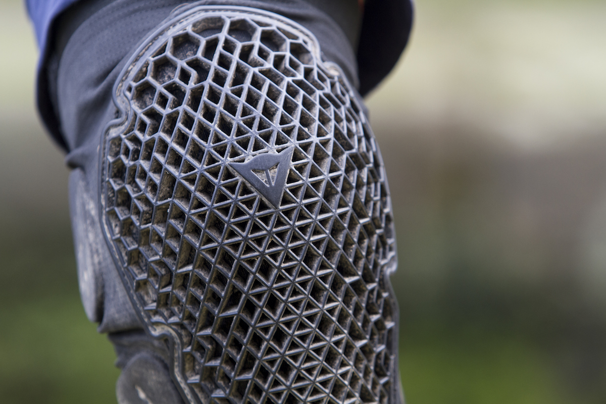 The Trail Skins 2 is the lightest knee pad that Dainese offers, and it’s ideally suited to cross-country and trail riding. Superseding the already-popular Trail Skins pads, Dainese wanted to boost protection levels, while simultaneously improving ventilation and comfort. To do this, Dainese introduced its Pro-Armor technology. Also found in the Rhyolite jacket and motorcycle protective wear, Pro-Armor is an instantly recognisable latticework structure that’s built from shock-absorbing rubber. During an impact the Pro-Armor shield deforms as it compresses, which helps distribute impact forces throughout the lattice.