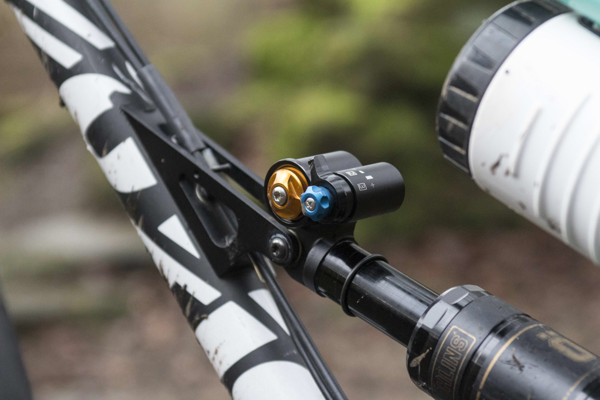 Black with a smattering of gold and a touch of blue. Classy. Both fork and shock are well finished and have a high quality feel and look. With both high speed and low speed compression adjustment as well as rebound you have what you need to get set up just so… to suit you and where, what and how you are riding. With the black lever at the top of the left fork leg there are five clicks of high speed compression adjustment and a further higher level of compression damping that sets the fork very firm. This is featured for sustained smooth climbs.