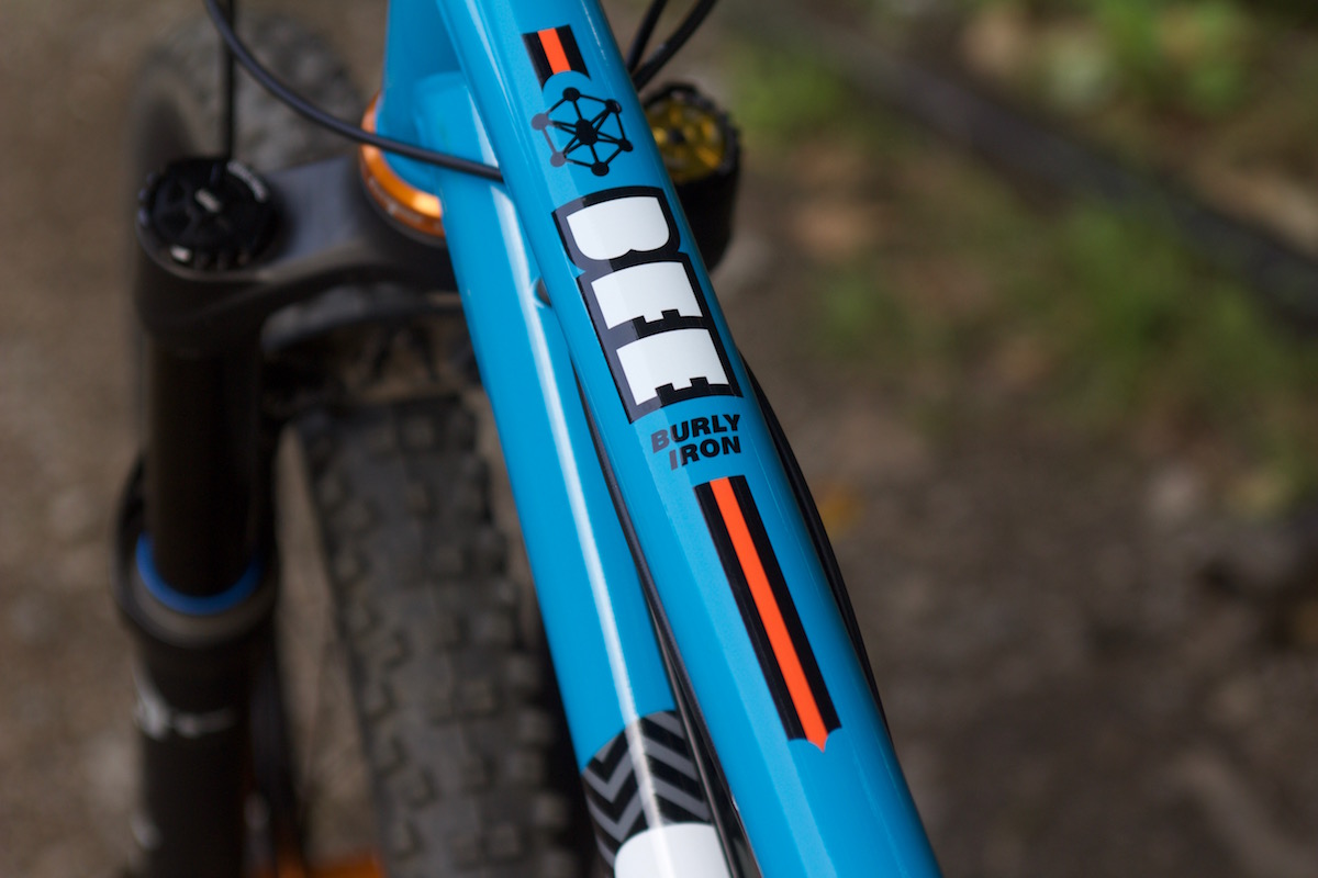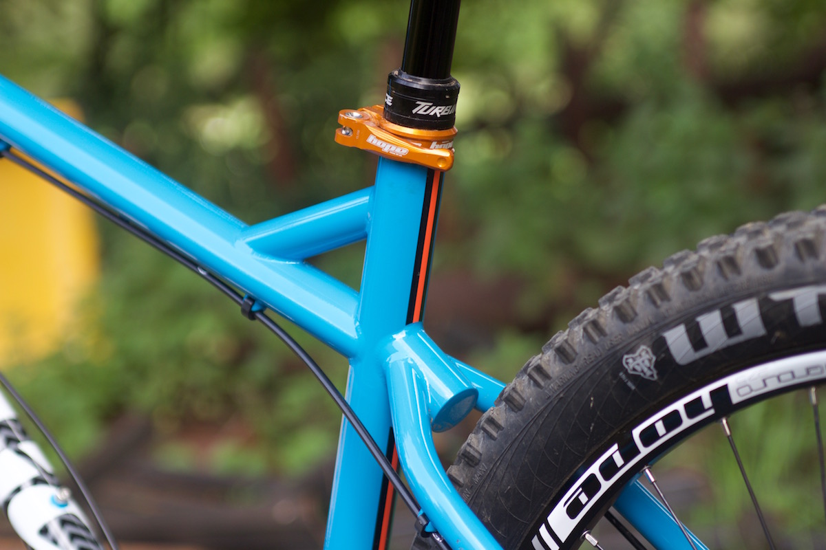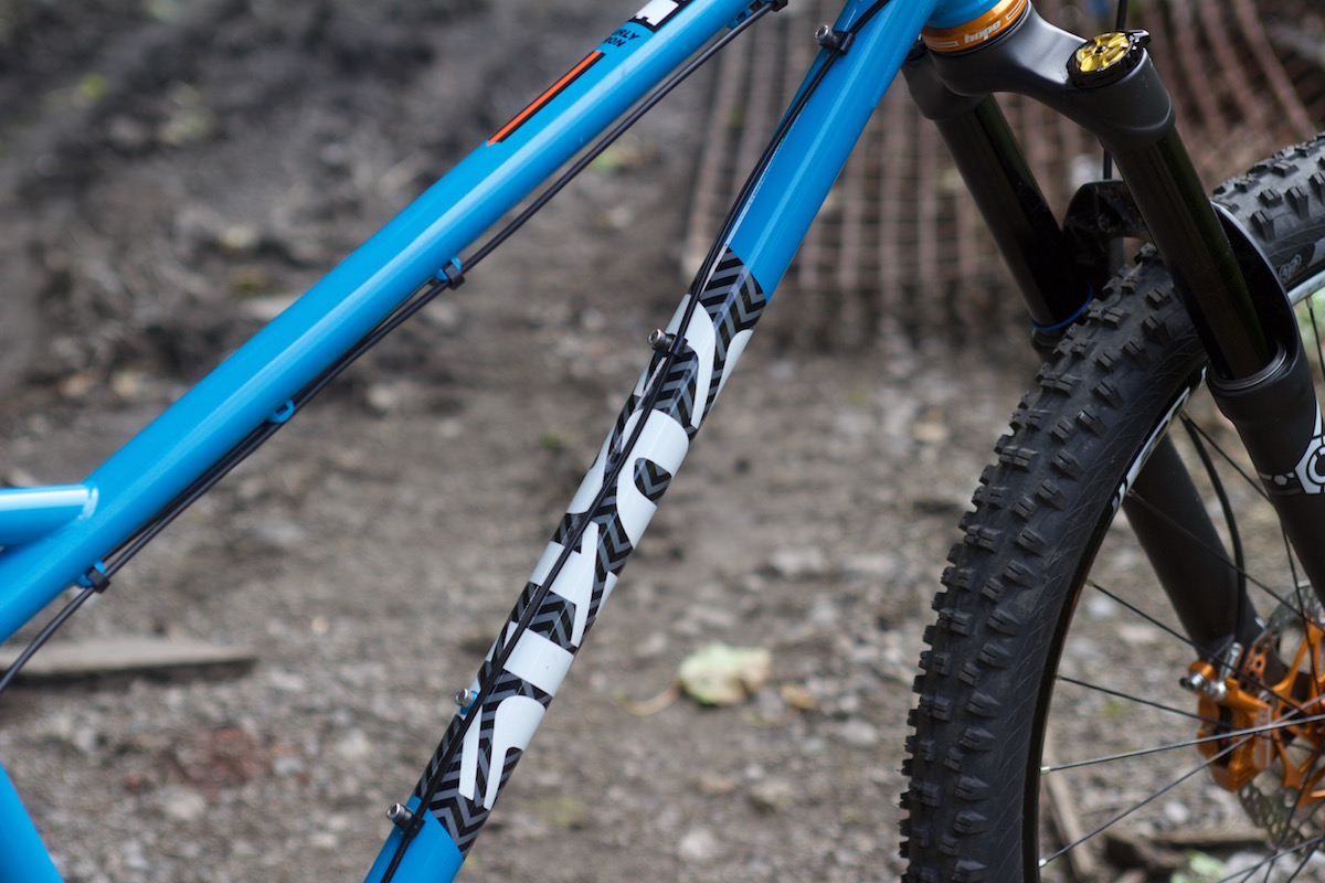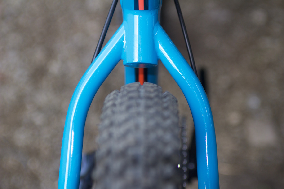 The Gloss Blue colour features some lovely orange pin-striping that’s hidden down the back of the seat tube.