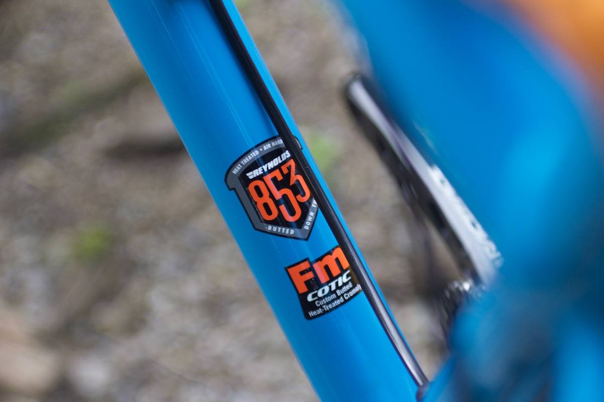 Reynolds 853 downtube, and heat-treated cromoly tubing elsewhere.