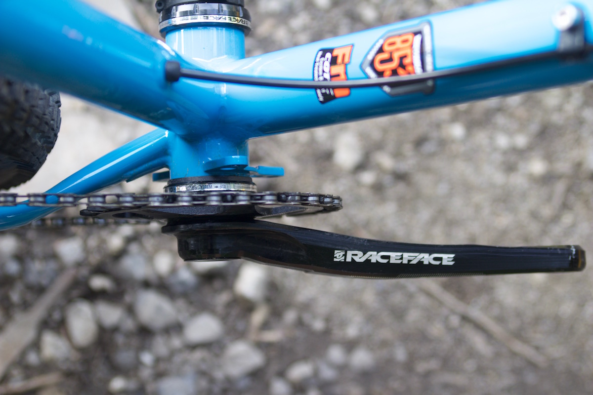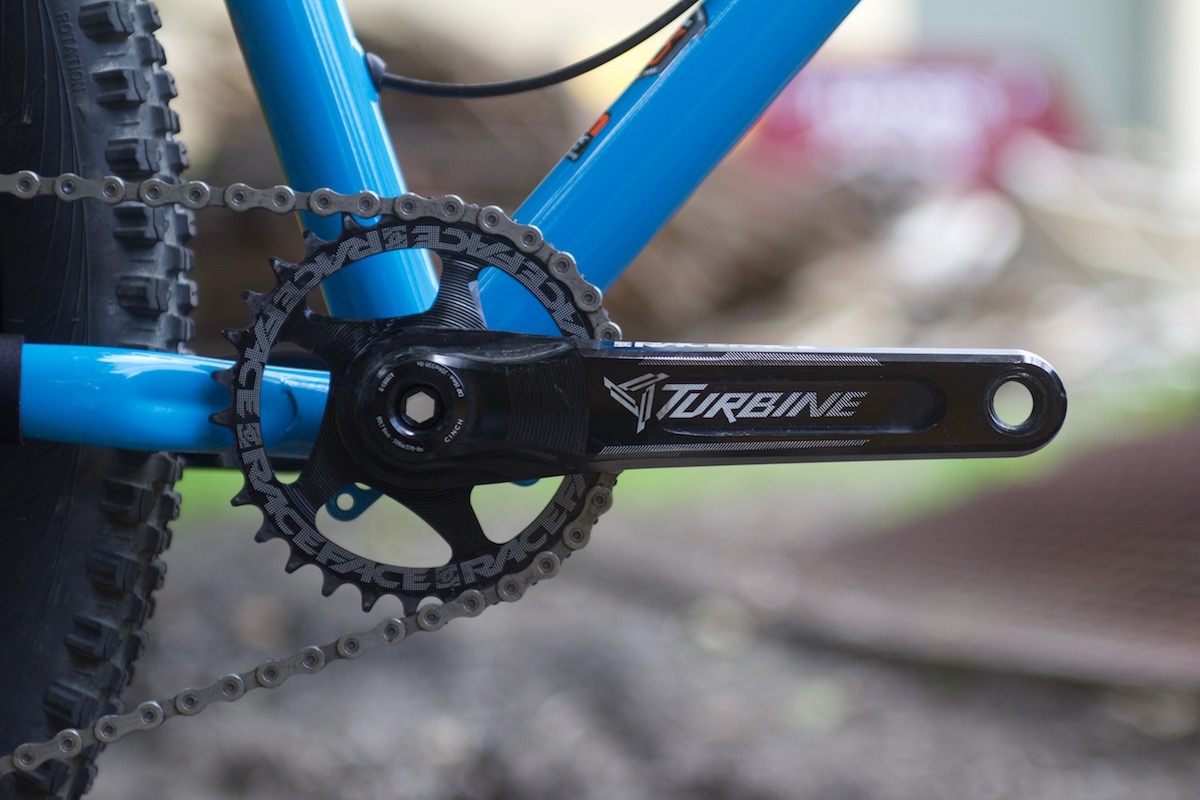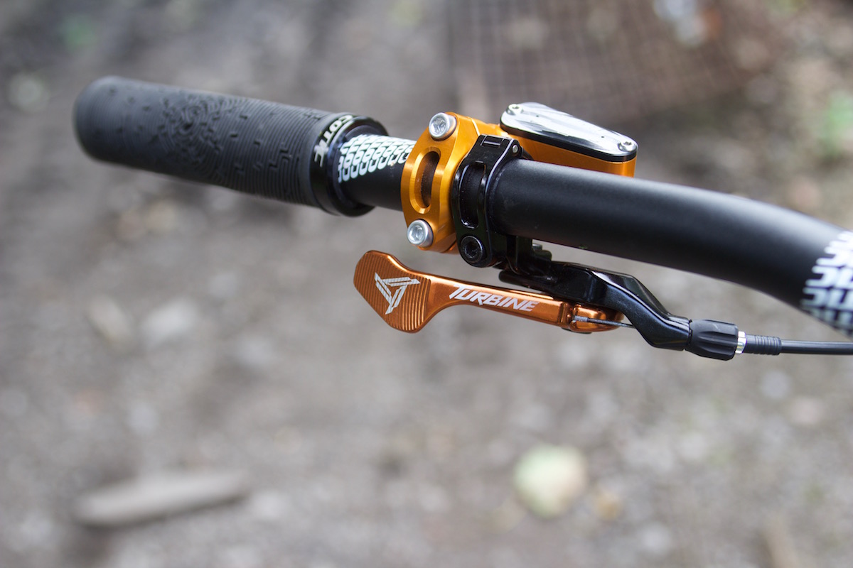 Slippery Race Face Turbine dropper post for the up’ing and down’ing of the saddle.