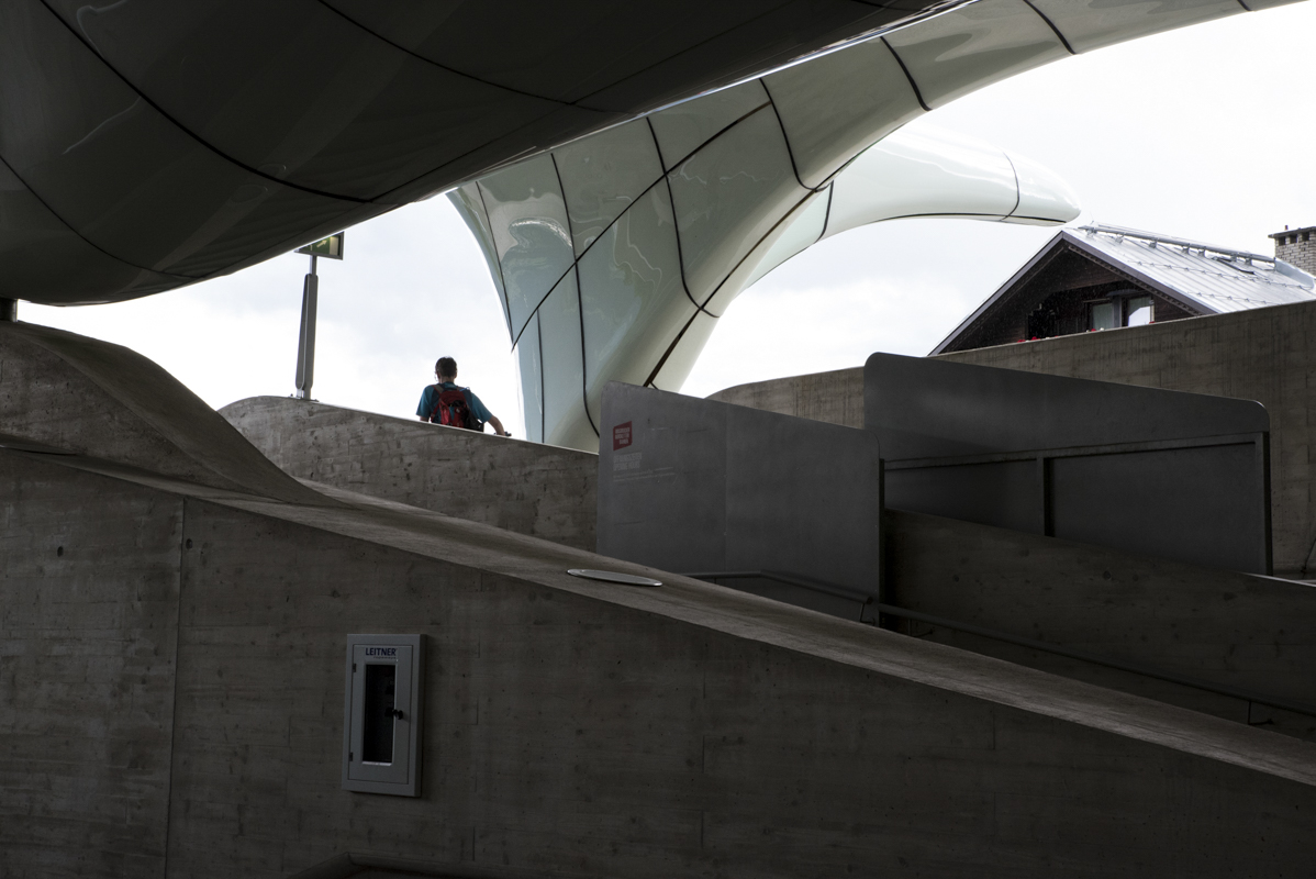 If you’ve booked accommodation in the city, you could easily pedal right back there through the network of streets – there are a fair number of cycle lanes, including a very pleasant riverside path, and there are plenty of people who use bikes to get around the city (despite the steep hills outside the centre – seeing elderly people on 9-speed shopper bikes pedalling their way up the hillsides really puts the UK utility cycling levels to shame). Bikes are allowed on the Nordkette Funicular, better known to locals as the Hungerburgbahn, but you have to get on at the first stop in town, the Station Congress, and not the stations part way up. You also need a relatively clean bike, although you’ll find plenty of bike wash facilities around if you need them, including one at the Station Congress itself. The whole set up feels distinctly futuristic, and you’ll likely find yourself thinking that London’s new Crossrail link seems distinctly unambitious as you zip swiftly straight up the side of the mountain, past Zaha Hadid’s swooping station roofs designed to look like the glaciers that grace the surrounding mountains.