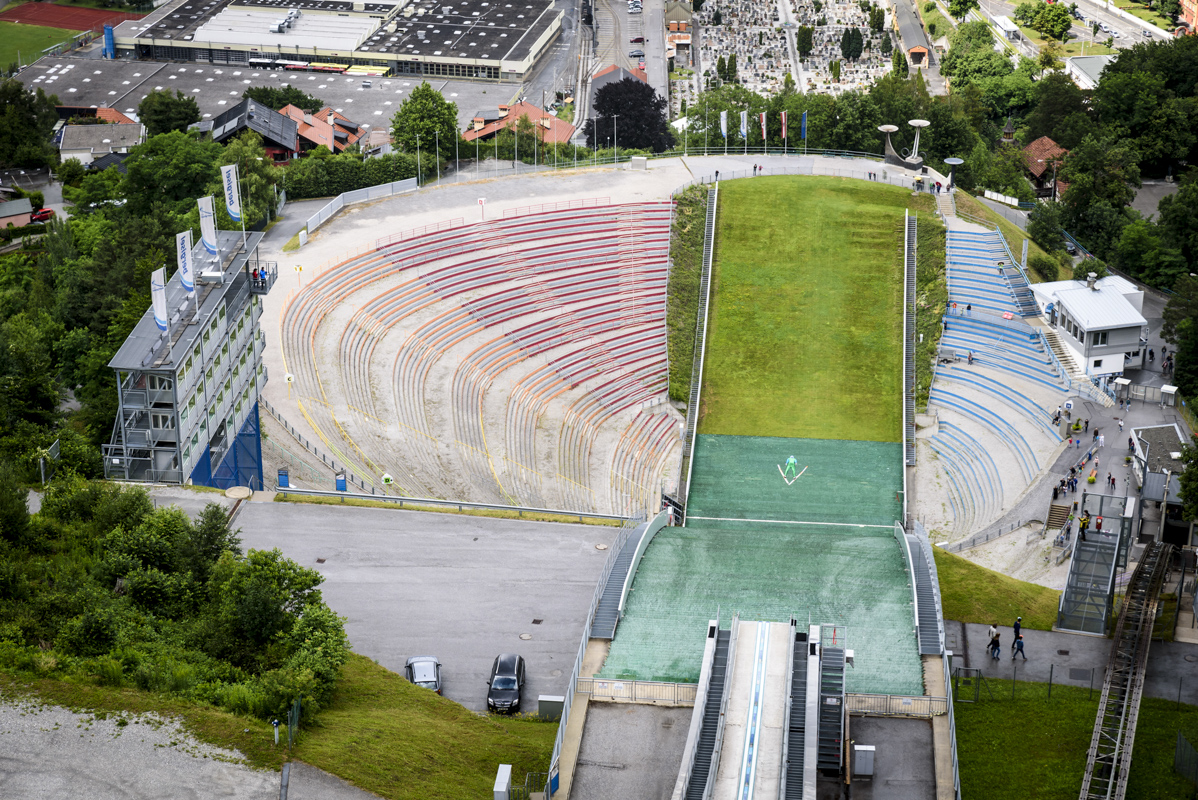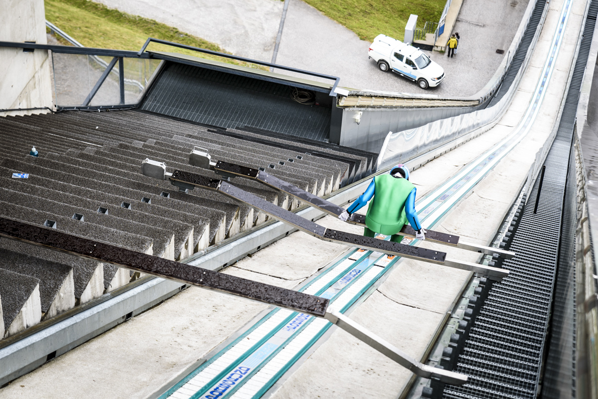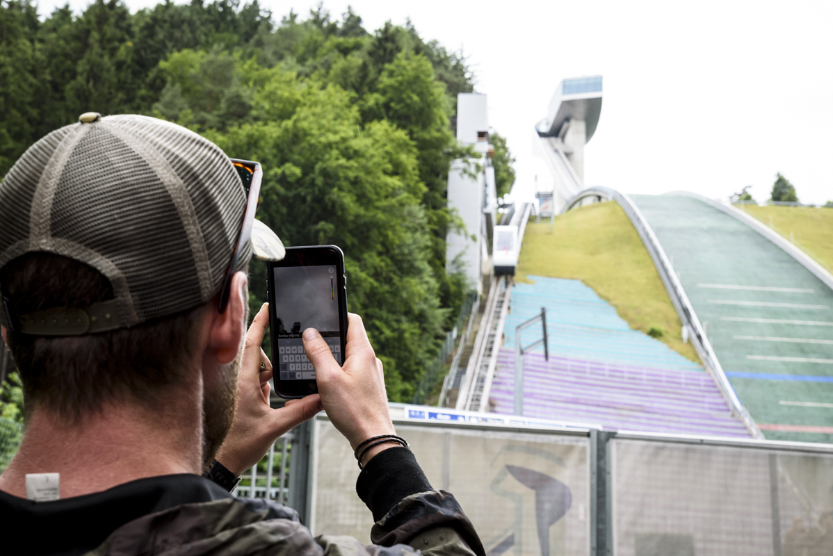 It’s not just the two step climbers with quivering legs as we shuffle out onto a viewing point to watch a ski jumper prepare to plummet down the slope that many of us will recognise from Winter Olympics coverage. It’s one of the only ones in the world that can be used in both summer and winter, so top flight ski jumpers are often to be found here taking advantage of the training opportunity. As he zips up his onesie and vanishes down the slope and out of view (the landing spot is hidden by the angle of the slope, so you can’t see where you’re aiming for. As if that wasn’t terrifying enough, what you can see from the top is the city’s graveyard), we begin to think that our trail riding efforts were perhaps not as epic or death defying as we were giving ourselves credit for.