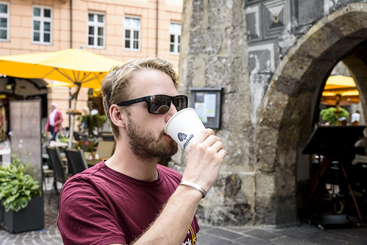 With so many students in town, it’s possible to find places to eat and drink at any budget. On one night we eat at the oldest restaurant in town, Weisses Rossel, which serves a range of traditional foods in a characterful building, before moving on to a student bar where children play on balance bikes in the courtyard. As well as looking up to admire the buildings, it’s worth being nosy and sticking your head round the doors under the arches and peeking up the flights of stairs leading up from the streets. The buildings in the old town often have courtyards hidden inside them, and lots of hidden bars and cafes can be found up stairs or in these courtyards. For the best inside information, ask a student for tips on where to hang out.
