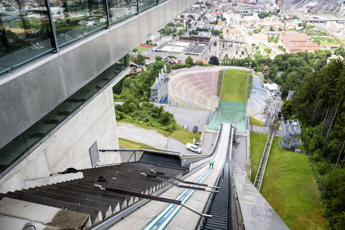 It seems the city’s planning department is adventurous. Zaha Hadid, the architect whose swooping geometric designs were sometimes too extravagant to make it past the conceptual stage, designed both the Bergisel Ski Jump and the Nordkette Funicular stations. But it’s not just the internationally acclaimed architects who are being let loose in Innsbruck – there’s barely a boring modern building in sight, with every one having interesting and distinct features from the next. Polished concrete curves, modern cubes of glass, metal and planted walls, coloured renders, renaissance frills, even a golden roof. It’s all there, making Innsbruck a destination that might have a visiting mountain biker half hoping they spanner themselves on the first run, giving them an excuse to explore all that this city has to offer.