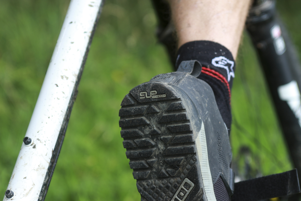 The tread itself is good though, with more aggressive rectangular blocks used at the heel and toe – the parts of the shoe that require the most traction when trudging up a steep bank. Like many other trail shoes designed for dusty summery conditions, they’re still not great in mud, but they are much better than the Specialized 2FO ClipLite Lace shoes that might as well me made of teflon when it comes to wet weather grip. Speaking of wet weather, it isn’t the Rascal’s forte, as there’s enough mesh and ventilation used on the upper that splashy puddles will see water ingress quite quickly. On the flip side, the Rascals breath pretty well.