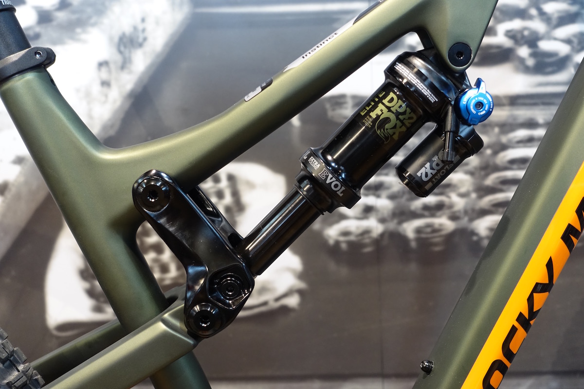 This is the Instinct Carbon model, though alloy versions are available too.Rear suspension travel is 140mm, which is controlled by a Fox Float DPS EVOL rear shock on each model. This one is the Performance Elite version.Fox 34 fork up front with 140mm of travel to match the back.Rocky’s 2018 models are all stepping up with more aggressive Maxxis rubber. Shown here is a 2.3in wide Minion DHR II for the Instinct.Rocky Mountain head badge.Nice internal routing on the Smoothwall carbon frame.780mm wide Race Face riser bars.1×12 SRAM Eagle drivetrain doing the shifty-shifty.Under the downtube lies the cable exit port.An accelerometer mounting point for the upcoming Fox Live Valve suspension system.There’s room for a bottle cage inside the mainframe (FTW!) plus a third bolt lower down that may be the other piece of the Fox Live Valve system…With the new frame, new suspension design and reworked geometry, the Instinct 29er is a big step up from the previous model.Same same, but different. It’s the BC Edition of the Instinct platform. More travel, more gnar.