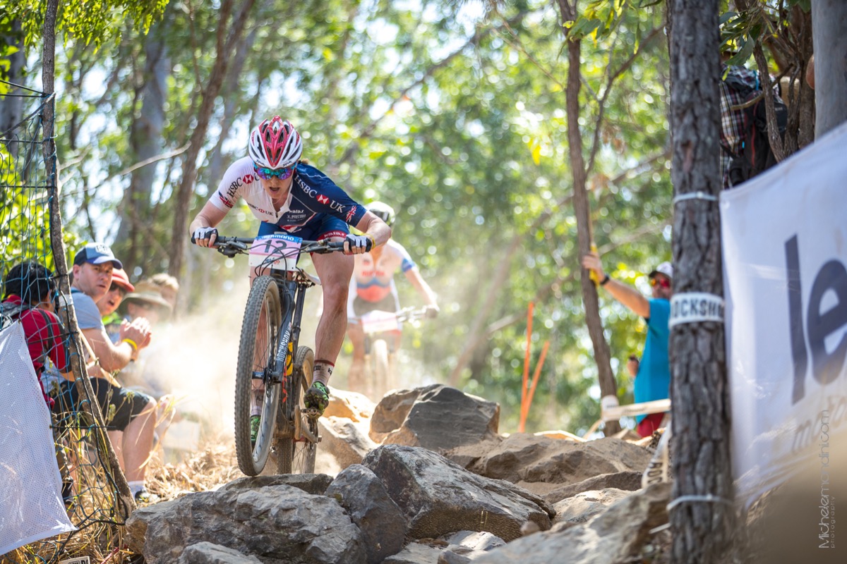 But what of XC racing? Despite being the only off road cycling discipline in the Olympic line up, and plenty of popularity in other countries, it’s failed to capture the imagination of the wider public in the UK. It can’t be for lack of spectacle – courses these days are often very technical, with riders tackling obstacles on hardtails that would have many a trail rider off and pushing. It can’t be the Lycra – road cycling in the UK has no problems with popularity. Maybe it’s the fact that it’s hard – an hour or so of racing with your heart rate in the red – but lacks the romance of wild eyes staring out from a face full of mud that comes with cyclocross? (Mind you, ‘cross isn’t that mainstream popular either). Think cyclocross and you also think beer and chips, while XC is more recovery protein shakes on the rollers. Even our national governing body, British Cycling, hasn’t appeared terribly interested in the sport, despite its Olympic status – although there are some good signs that’s changing – not least Annie Last’s success in the World Championships in Cairns.