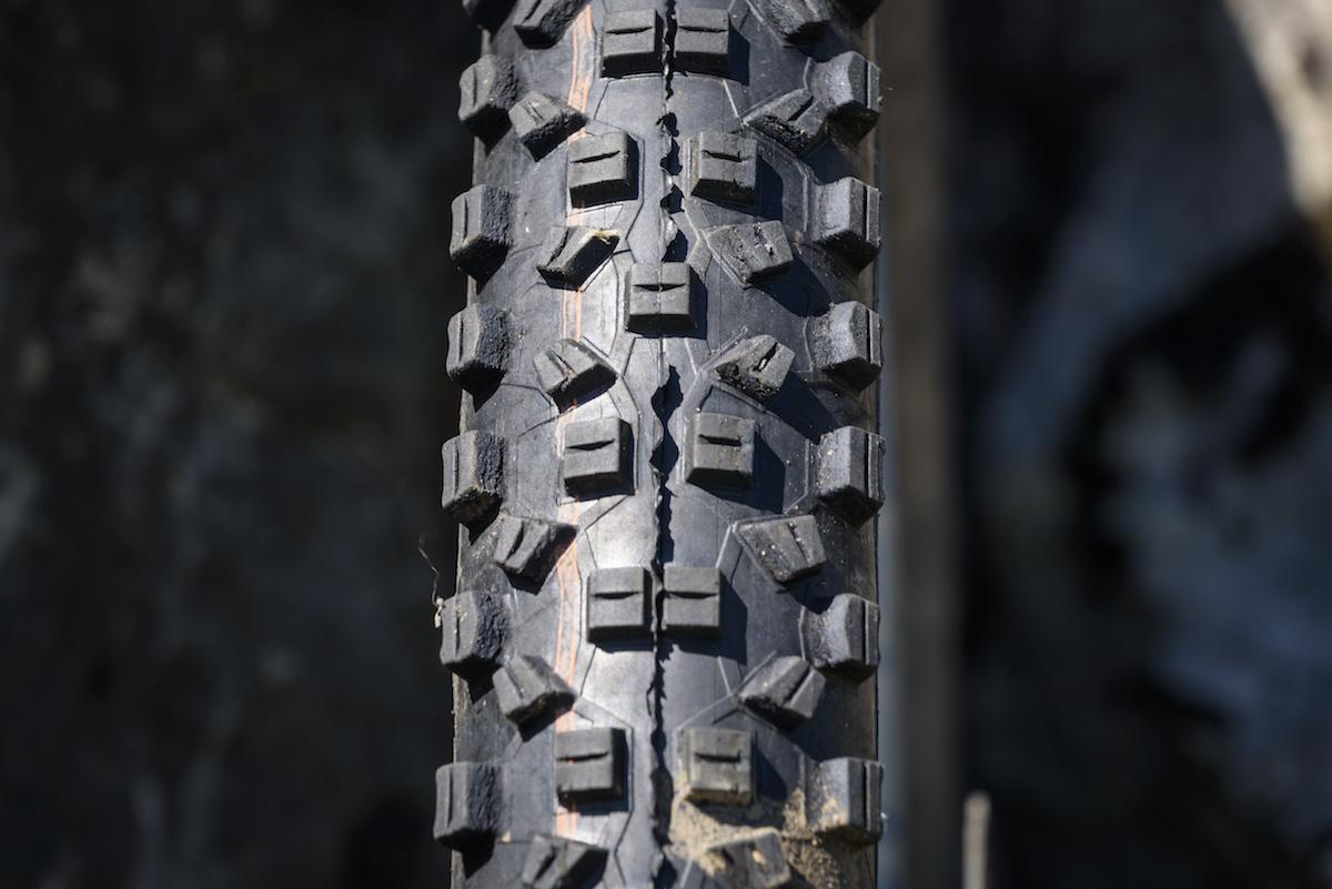 As the name suggests, the Hans Dampf is a great all rounder, performing above average in most trail conditions. The rounded profile offers consistent levels of cornering grip, and it also rolls really well for its given weight and size. Unless you’re riding in much looser and steeper conditions where we’d suggest pairing the Hans Dampf with a Magic Mary up front, the Hans Dampf is a versatile trail bike tyre for all year round use. As for the new Addix Soft compound? Well it is nice and sticky, but while it’s improved durability-wise over previous Hans Dampf tyres, we’re still seeing the early signs of knob rippage a little too soon for our liking.