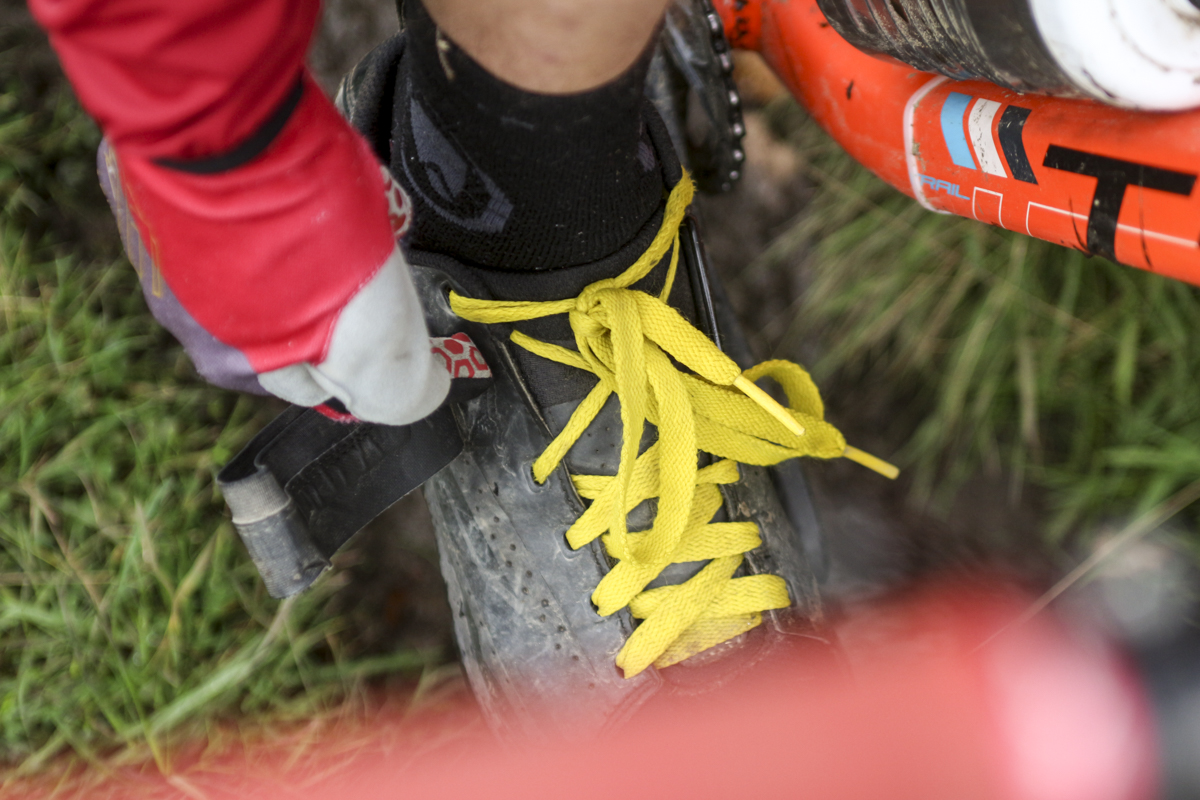 Mavic offers two different Deemax models; the Deemax Elite, and the Deemax Pro (tested). Both are SPD-compatible shoes that use the same high-traction Contagrip rubber outsole. The Deemax Pro we’ve got here however gets a taller, asymmetric mid-top upper for more coverage, and added security thanks to a full lace-up closure system with the addition of one big fat velcro strap. There’s a wide range of sizes, and you have the option of the black version I’ve been riding with (yellow and black laces are included in the box), though there’s also a hyper-bright yellow and black finish on offer if you possess a bike and any kit that matches it.