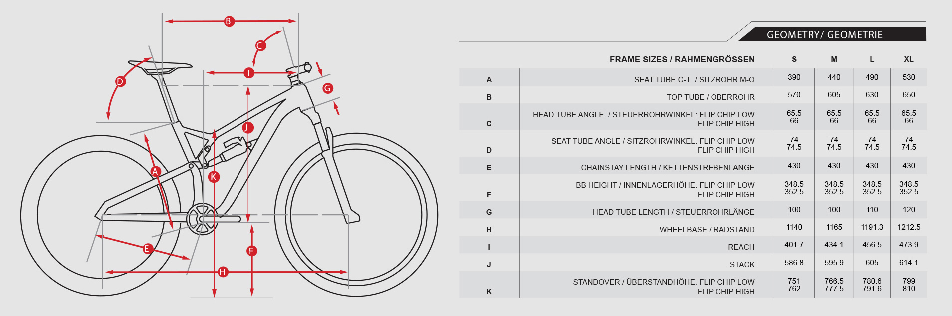 Riders can alter the head angle of the bike (65.5 or 66 degrees), but rather than using an angleset headset to achieve this, it’s done via a flip chip in front of the shock. That also slightly alters the seat tube angle, bottom bracket height and standover too.