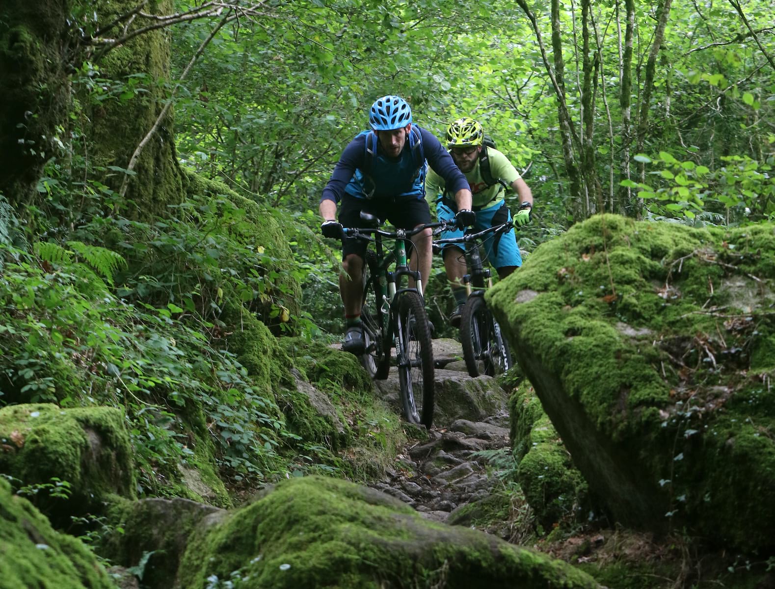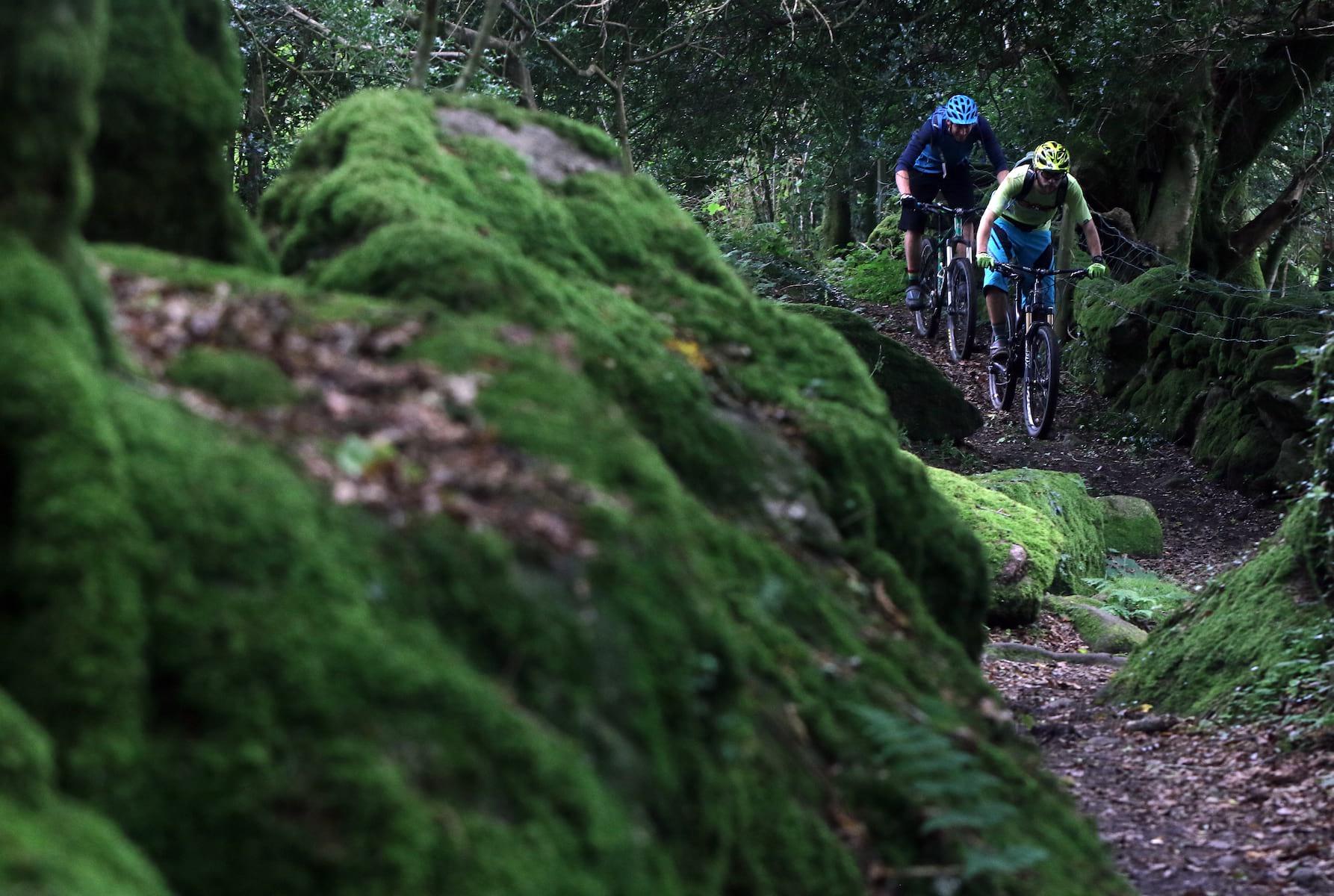 Just as well really. The open singletrack eggs you on to higher and higher speeds before suddenly slamming in short technical sections to keep you on your toes. Maybe a small rock garden, or a narrower-than-expected gap between the rocks. I get caught out by a moss-covered slab of rock in a corner, which sweeps my front wheel from under me and deposits me on the ground like a sack of spuds.