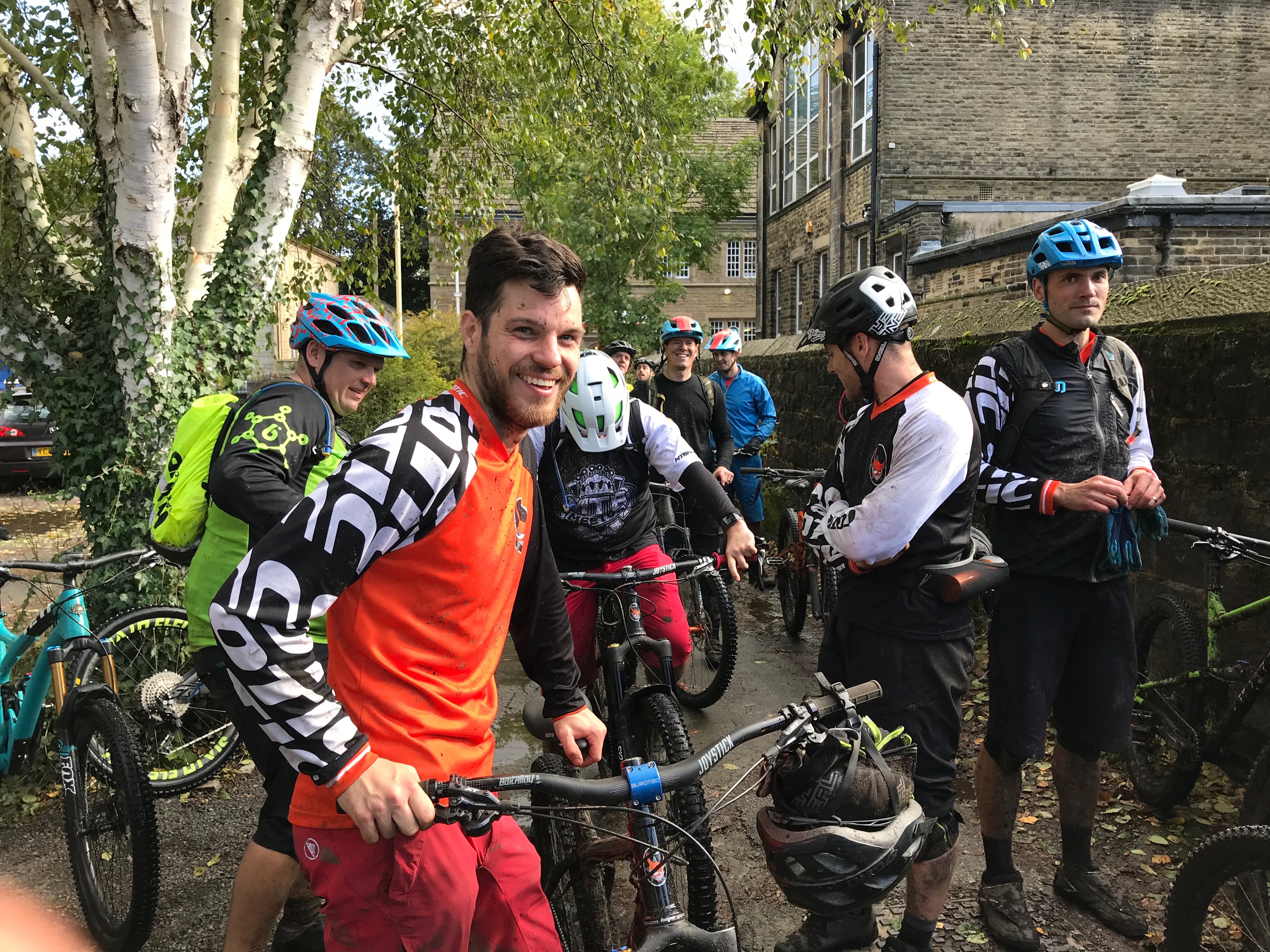 There was quite a queue for the bike wash.Rowan Sorrell was quite a thing to behold on Hebden’s tech trails. So smooth, so fast. How can it look that easy?Ross is quite a thing to behold too.After the clean up……everyone sits attentively while Mark talks works stuff…and then……it’s time for party shoes!…and party shirts!…and party hair!