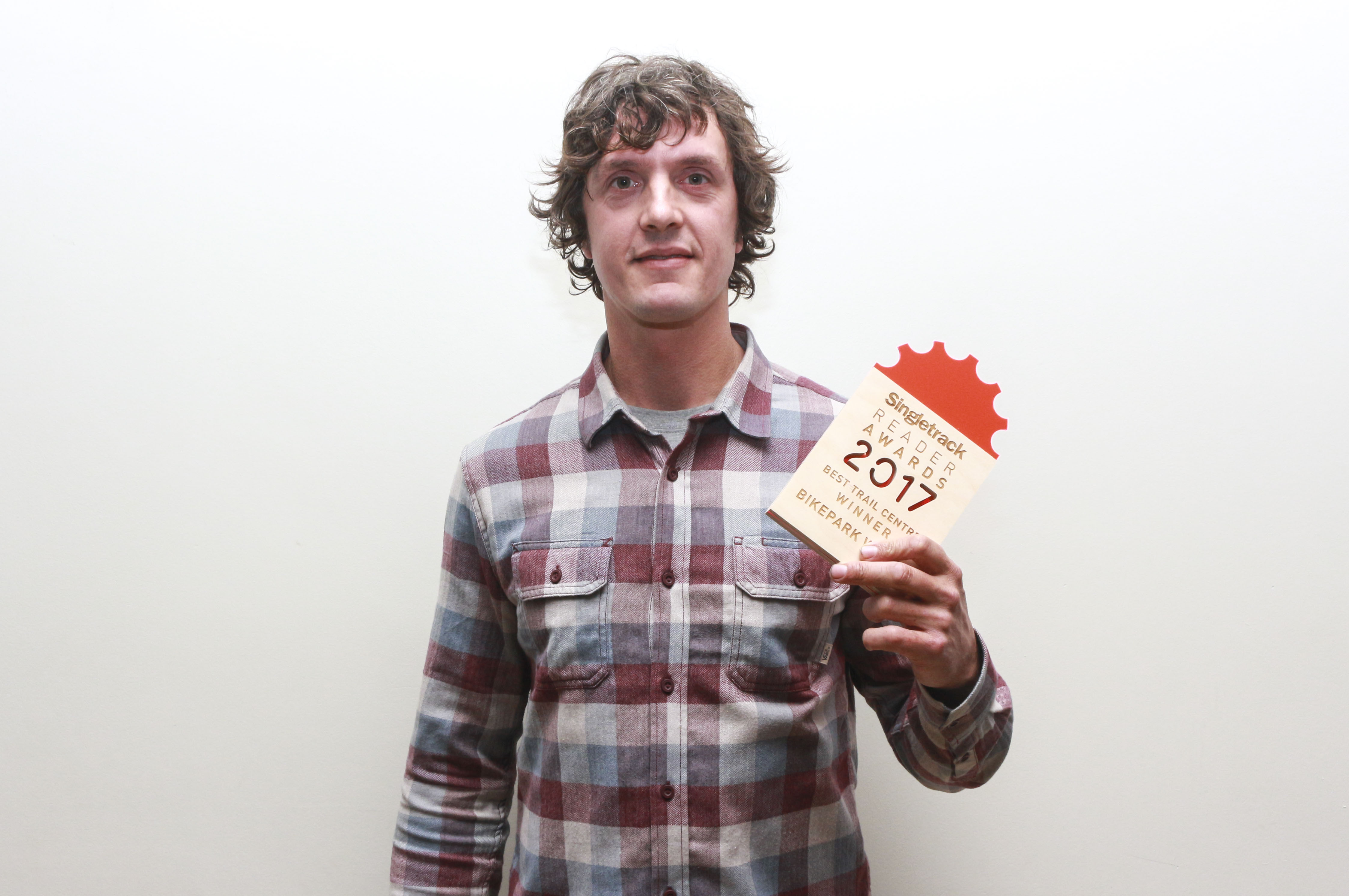 Your hosts for the evening.Wil looks anxious.Wil was right to look anxious. Chipps is as unpredictable as his outfits.Mark was on door duty, keeping out the riff raff.Wil looking worried again.Winners were invited up to say a few words, or to do their best James Bond impression.From James Bond to The Usual Suspects.Winners were lined up and shot against the wall (for photos).Is that NP for Nukeproof or Nigel Page on Pagey’s tshirt?Hannah, comfortably smiling in front of the camera as always.Rowan Sorrell accepting the Best Trail Centre award for Bike Park Wales.Chipps looking embarrassed beside the real photographers.Rugby player or mountain biker?‘I told you we shouldn’t have worn shirts’.The Ordnance Survey reps were identifiable by their proper shirts and general smart appearance among a sea of branded clothing and plaid shirts.Alex from SRAM wearing a baseball cap on his hip. When your hair is that perfect you don’t want to mess it up.Whatever it is that’s about to attack, only Kelvin has seen it.Garage Bikes were well chuffed with their award.
